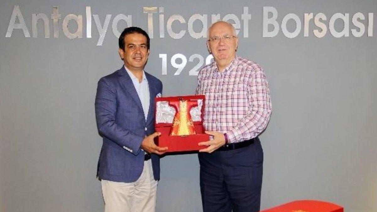 Romanya Arges Bölge Konseyi Başkanı Florian Tecau, Romanya Kamu Hizmetleri İşveren Örgütü (PSP) Başkanı Florian Dudu, Antalya Ticaret Borsası (ATB) Başkanı Ali Çandır’ı ziyaret etti.Romanya Arges Bölge Konseyi Başkanı Florian Tecau, Romanya Kamu Hizmetleri İşveren Örgütü (PSP) Başkanı Florian Dudu, Arges Bölge Konseyi Uluslararası İlişkiler Müdürü Roxana Stoenescu, Finans Direktörü Carmen Mocanu, Romanya Kamu Hizmetleri İşveren Örgütü Genel Sekreteri Cristian Marica, Akdeniz Belediyeler Birliği Genel Sekreteri Hüseyin İnce ve Akdeniz Belediyeler Birliği Başkan Danışmanı Adlıhan Dere ile birlikte Antalya Ticaret Borsası Başkanı Ali Çandır’ı ziyaret etti.ATB Meclis Başkanı Hüseyin Cahit Kayan, ATB Başkan Yardımcısı Halil Bülbül’ün de bulunduğu ziyarette, Ali Çandır konuk heyete Antalya Ticaret Borsası ve Batı Akdeniz Ekonomisini Geliştirme Vakfı’nın çalışmaları hakkında bilgi verdi. Tarımsal hasılanın yüzde 8’ini Antalya’nın oluşturduğunu, kışın yaş meyve ve sebzenin yüzde 80’inin Antalya’dan sağlandığını belirten Çandır, "Antalya her ne kadar turizm kenti olarak bilinse de tarımın da başkenti" dedi.Romanya’nın küreselleşen dünyaya Türkiye’den sonra girdiğini ancak Avrupa Birliği üyeliğiyle öne geçtiğini belirten Çandır, “Son dönemde Romanya’dan ticaret ve teknoloji yatırımlarına ilişkin iyi haberler geliyor. Potansiyel olarak baktığımızda birbirimizi tamamlayan iki ülke olabiliriz. Umuyoruz yaptığımız bu görüşmeler iki ülke arasındaki işbirliğinin gelişmesine faydalı olur" dedi.İŞBİRLİĞİ TEKLİFİRomanya Arges Bölge Konseyi Başkanı Florian Tecau, Türkiye ili ticari ilişkilerin gelişmesinden yana olduklarını belirterek, ziyaretleri bu çerçevede sürdürdüklerini söyledi. Romanya Kamu Hizmetleri İşveren Örgütü Başkanı Florian Dudu da Romanya’da Türk girişimcinin yatırım yapabileceği pek çok alan olduğunu belirterek, Türk girişimcileri Romanya’ya davet etti.Ali Çandır, ziyaretleri anısına Tecau ve Dudu’ya seramik kaftan, Romanya heyetine ise Antalya’nın yöresel lezzeti tavşan yüreği zeytin hediye etti. Tecau ve Dudu, konukseverliği nedeniyle Ali Çandır ve yönetimine teşekkür etti.