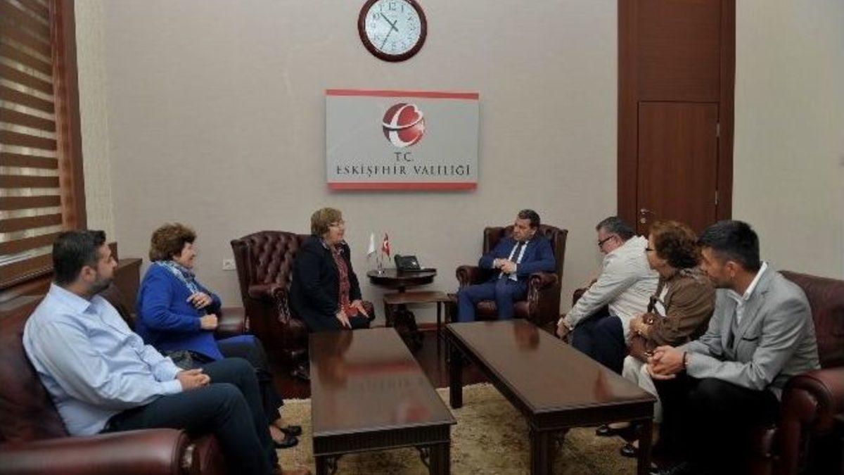 Eskişehir Rumeli İş Adamları Derneği Başkanı İbrahim Durgut, Kanserle Yaşam Derneği Başkanı İnci Ulucan ve beraberlerindeki yönetim kurulu üyeleri Vali Azmi Çelik’i makamında ziyaret etti.Nazik ziyaretlerden duyduğu memnuniyeti aktaran Vali Çelik, vatandaşlara hizmet etme amacıyla çalışan sivil topum kuruluşlarının önemine vurgu yaptı. Günümüzde en önemli sağlık sorunlarından bir olan kanser hastalığının önemine dikkat çeken Vali Çelik, vücudumuza zarar veren kötü alışkanlıklardan uzak durulmasını istedi. Bu hassas konuda mücadele eden bütün hastalara şifalar dileyen Vali Çelik, kanserle ilgili vatandaşları bilinçli olmaya çağırdı.Eskişehir’in ekonomik kalkınmasına katkı sağlayan derneklerin ve bu derneklerde faaliyet gösteren iş adamlarının bir çatı altında toplanmasının önemli olduğunu söyleyen Vali Çelik, Rumeli İş Adamları Derneği’nin ziyareti esnasında, “Rumeli iş adamları şehrin ekonomisine ve ticari hayatına çok büyük katkı sağlamaktadır. Eskişehir, dünyanın her bölgesinden göç alan bir şehir. Şehrimizin sanayisinin ve ticaret alanının gelişmesine katkı sunan herkese teşekkür ederiz” şeklinde ifade kullandı.Eskişehir Rumeli İş Adamları Derneği Başkanı İbrahim Durgut ve Kanserle Yaşam Derneği Başkanı İnci Ulucan yaptıkları faaliyetleri anlattı. Eskişehir’e sanayi alanında katkı sunmaya çalıştıklarını aktaran Rumeli İş Adamları Dernek Başkanı Durgut, ülkenin birliği ve huzuru için üzerilerine düşen bir görev varsa seve seve yapamaya hazır olduklarını bildirdi.“Kansere Birlikte Dur Diyelim” tiyatro projesini hayata geçirdiklerinden bahseden Kanserle Yaşam Derneği Başkanı Ulucan da, ziyarette yaptığı konuşmada, “Eskişehir, Afyonkarahisar, Bilecik ve Kütahya illerindeki 52 ilçede 59 oyun sergiledik. Kanser hastalarının en büyük ihtiyacı moraldir. Kanser oldum diye kimse hemen öldüğünü zannetmesin. Kanserle yaşamayı ve mücadele etmeyi öğrenmek lazım” dedi.13 yıllık bir dernek olduklarını aktaran Başkan Ulucan, gönüllük esasına göre hizmet ettiklerini sözlerinin sonuna ekledi.