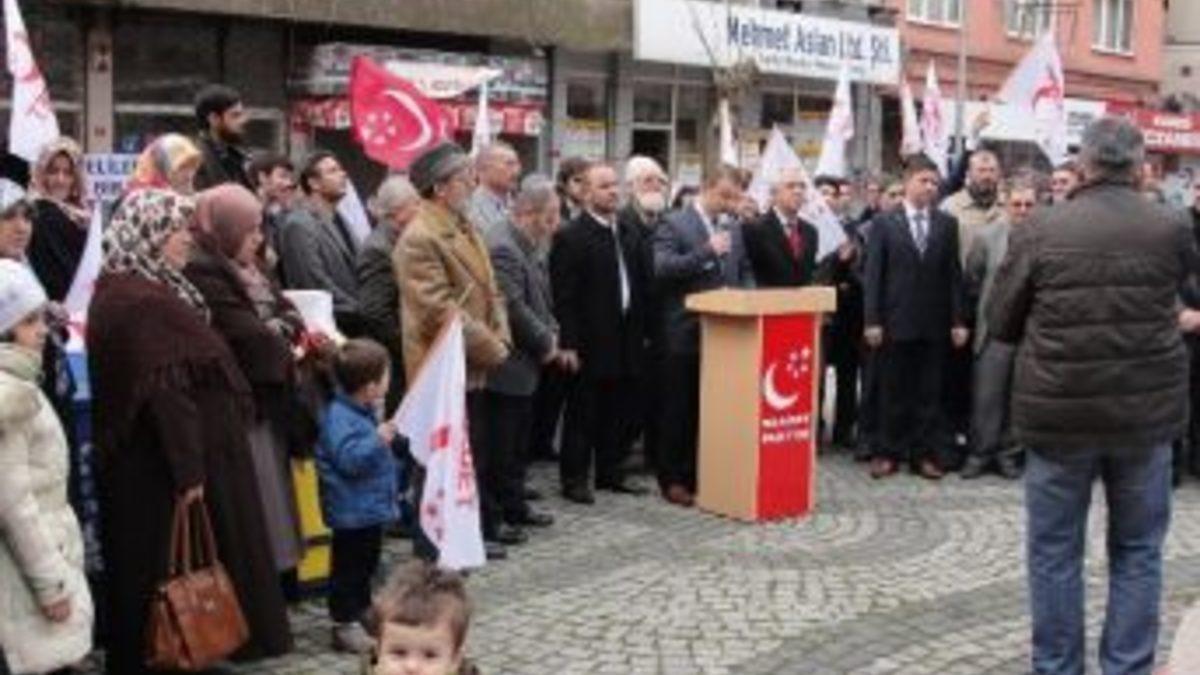 Balıkesir'de Saadet Partisi üyeleri, Türkiye'ye savunma maksatlı patriot füzeleri yerleştirilmesine tepki gösterdi.
