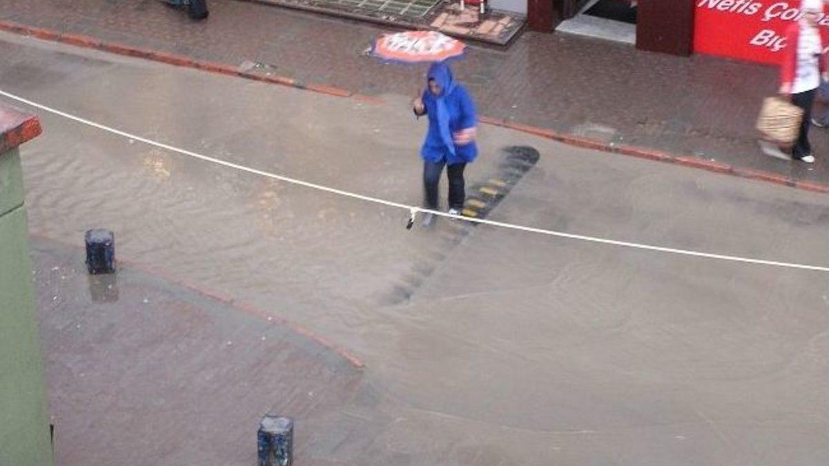 Akşam saatlerinde etkili olan yağışlarda bazı işyerleri ve evleri su bastı.