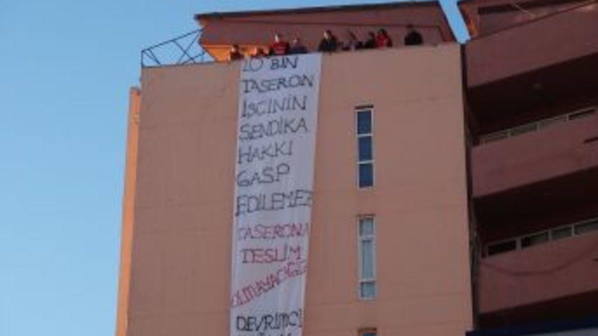 Dev Sağlık - İş Sendikası üyesi bir grup, Taksim Eğitim ve Araştırma Hastanesi çatısında eylem...