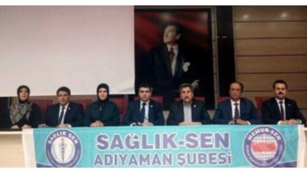 Sağlık-Sen Adıyaman Şubesi tarafından yapılan basın açıklamasında, 14 Mart Tıp Bayramı’na Ankara’da ki terör saldırısının acısıyla girildiği kaydedildi.Sağlık-Sen Adıyaman Şube Başkanı Yasin Barutçu yaptığı basın açıklamasında, bu yıl Tıp Bayramı’na hain terör saldırısının gölgesinde geçtiğini vurguladı.Yasin Barutçu yaptığı basın açıklamasında, “Terör vatandaşlarımızı vurmuş, birçok vatandaşımızın hayatını kaybetmesine, birçoğunun da yaralanmasına sebep olmuştur. Ancak, bu acıyla ilk yüzleşen yine sağlık çalışanları olmuştur. Öznesinde insan olan her olayda ilk karşımıza çıkan sağlık çalışanları, kendi canlarını hiçe sayarak bu hizmeti vermektedir. Sağlık-Sen olarak her zaman sağlık çalışanlarımızın yanında olduk.Hangi görevde bulunursa bulunsunlar sağlık hizmeti sunan bütün çalışanlar çok kutsal bir görevi ifa etmektedir. Sağlık çalışanları görevlerini yerine getirirken maalesef hem fiziki hem de sözel şiddete sık sık maruz kalmaktadır. Bizim en büyük temennimiz vatandaşlarımızın sağlık hizmeti sunan fedakar sağlık çalışanlarına karsı duyarlı olmasıdır.14 Mart Tıp Bayramı’nın bu noktada bir dönüm noktası olmasını diliyorum. Sağlık çalışanlarına karşı fiziksel ve sözel şiddet olaylarının yaşanmamasını diliyorum” diye konuştu.