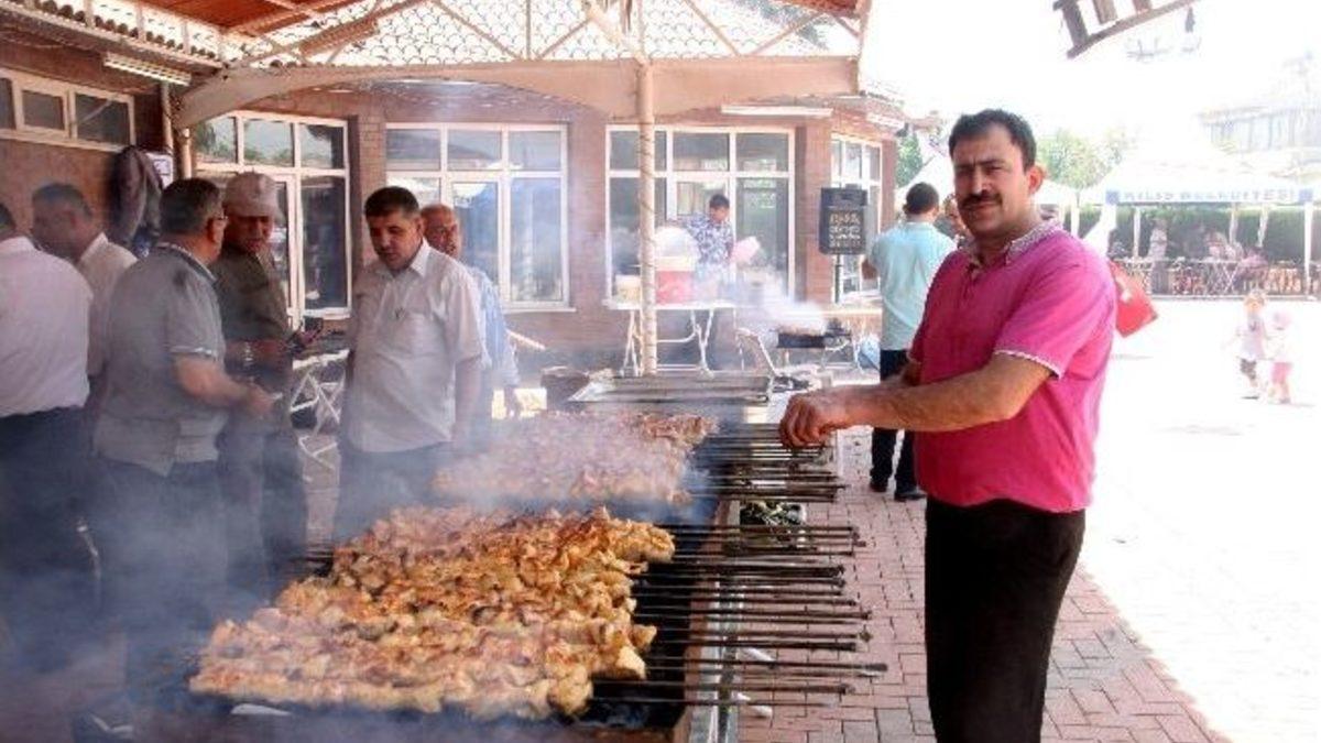Kurulan dev ocaklarda kebap pişirilerek misafirlere ikram edilirken, Sağlık Sen İl Temsilcisi Hüseyin Özcan, yemeğe katılan herkese teşekkür etti.