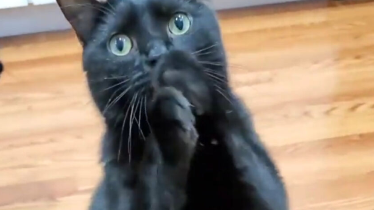 Kedilerin özellikle yemek masasının etrafında dolaşması eğlenceli görüntüler yaşatır. Ancak Waddy ismindeki bu siyah kedi diğerlerinden ayrılan önemli bir özelliğe sahip. Sahiplerinin elinde yemek gördüğünde Waddy âdeta yalvaran küçük bir çocuğa dönüşüyor. Çizmeli kedi çizgi filmindeki o masum bakışları hemen hemen herkes hatırlar. Waddy’in sosyal medyadan videolarını paylaşan sahipleri onun bu hallerini çizmeli kediye benzetiyor.