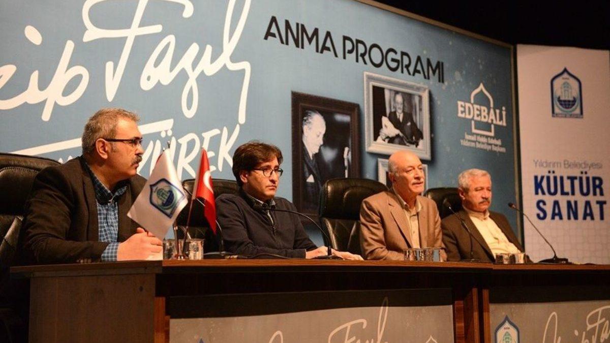 Yıldırım Belediyesi, “Sultânü-ş Şuarâ” Necip Fazıl Kısakürek’i andı.Barış Manço Kültür Merkezi’nde düzenlenen programda, yazar Ercan Yıldırım, yazar Mehmet Doğan ve Doç Dr. Mahmut Hakkı Akın, şair yazar Metin Önal Mengüşoğlu, Necip Fazıl Kısakürek’in sanatını ve dünya görüşünü anlattı. Programda ilk söz alan Metin Önal Mengüşoğlu, Necip Fazıl’ın Anadolu toprağının önemli insanlarından biri olduğunu söyleyerek, dini değerlere sahip çıkan, milli düşünceye mensup bir şair olduğunu ifade etti. Ercan Yıldırım ise, “Necip Fazıl sadece özgüven ve ‘Müslüman ben’ inşası gerçekleştirmemiş, İslamiyetin asli kaynaklarıyla buluşmasını sağlamıştır” dedi.Mehmet Doğan da Necip Fazıl’ın zamanı delip zamanı yırtma hamleleriyle hayatını anlamlandırmanın çilekeş adamı olduğunu belirtti. Doç Dr. Mahmut Hakkı Akın da, doğu ve batı sırrına ermiş ideal bir gençliğin Necip Fazıl’ın ömür boyu aradığı gençlik olduğunu söyledi. Programda ayrıca izleyicilere Yıldırım Belediyesi Kültür Müdürlüğü’nün yayını olan Necip Fazıl’ın hayatının ve şiirlerinin yer aldığı kitap hediye edildi.