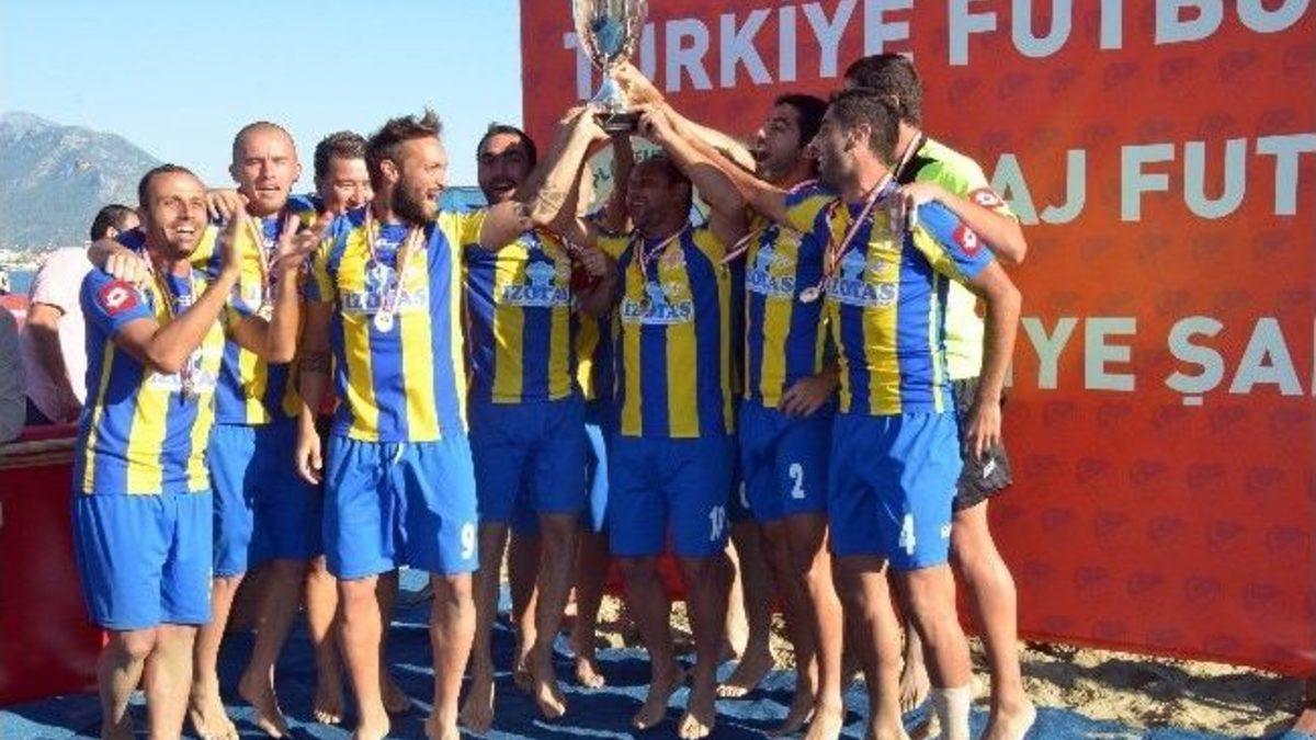 Seferihisar Belediyesi Cittaslow Plaj Futbol Takımı, Alanya’da gerçekleşen plaj futbolu Türkiye finallerinde şampiyon oldu. İki yıl aradan sonra tekrar plaj futbolunda Türkiye’nin en büyüğü olan Seferihisar’da, şampiyonluk kutlaması geç saatlere kadar sürdü.İzmir elemelerinden şampiyon olarak Alanya’da gerçekleşen finallere katılmaya hak kazanan Seferihisar Belediyesi Cittaslow Plaj Futbol Takımı, iki yıldır finalde kaybettiği şampiyonluğa bu yıl uzanarak büyük bir mutluluk yaşadı. Yarı final maçında son şampiyon Alanya’yı 4-3 yenen Seferihisar, final maçında da Samsun Ladik Belediye Spor’u 4-3 yenerek şampiyon oldu.İlçe döner dönmez büyük bir coşkuyla karşılanan futbol takımı, final maçının görüntüleri eşliğinde şampiyonluğu kutladı. Futbolcuları teker kutlayan Seferihisar Belediye Başkanı Tunç Soyer, "Bu büyük mutluluğu bize bir kez daha yaşattınız. Tüm Seferihisarlılar adına size teşekkür ediyorum. Son yıllarda ilçemizin adı her alanda duyulmaya başladı. Dile kolay sizde Türkiye şampiyonu olarak adımızı duyurdunuz. Hepinizle gurur duyuyorum” dedi.Seferihisar Cittaslow Plaj Futbol Takımı, geçtiğimiz aylarda Gürcistan’da düzenlenen uluslararası turnuvada da şampiyon olmuştu.
