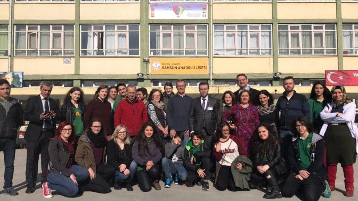 Samsun Anadolu Lisesinin (SAL) Avrupa Birliği Erasmus+ KA2 okul ortaklıkları projeleri kapsamında 2016-2018 döneminde gerçekleştirdiği EURİNTEGRE(Mültecilerin Entegrasyonu) projesinin açılış toplantısı yapıldı.Okulun konferans salonunda düzenlenen toplantının açılış konuşmasını yapan Samsun Anadolu Lisesi Müdürü Halil İbrahim Akmeşe, “Sığınmacıların entegrasyonu konusunda, ülkemiz tam anlamı ile geçmişinden beslendiği ensar kültürünü ortaya koymak suret ile zor durumda olan mültecilere kucak açmış, ekmeğini bölüşmüş, kendi okullarında eğitim almalarını, kendi hastanelerinde tedavi görmelerini sağlamıştır. Mültecilerin topluma entegrasyonun hususunda ülkemiz tüm kurumları ve insanı ile dünyaya model olacak fedakarlığı gösterebilmiştir. Hafta boyunca, proje çalışmalarının tamamlanmasının yanı sıra, şehrimizin kültürel ve tarihi zenginliklerinin de tanıtılacağı bir program düzenlenmiştir” dedi.Proje ortakları İspanya, İtalya, Almanya, Yunanistan ve Finlandiya ülkelerinin okullarından gelen yönetici, öğretmen ve öğrencilerden oluşan 19 kişilik heyet, hafta boyunca proje çalışmalarını gerçekleştirecek, İlkadım Kaymakamlığını, yerel yönetimleri, İl-İlçe Milli Eğitim Müdürlüklerini, ilçede bulunan bazı okulları ziyaret edecek ve mülteci çocukların topluma entegrasyonu ile ilgili iyi örnekleri yerinde inceleyip, yerel yönetici ve uzmanlardan bilgi alacak.Samsun Anadolu Lisesinin kurulduğu yıldan bu yana öğrencilerinin bir dünya vatandaşı olacak yeterlilikte yetişmesi için pek çok uluslararası projelerde ve etkinliklerde yer aldığı, Türkiye’yi ve Samsun’u başarı ile temsil ettiği bildirildi.