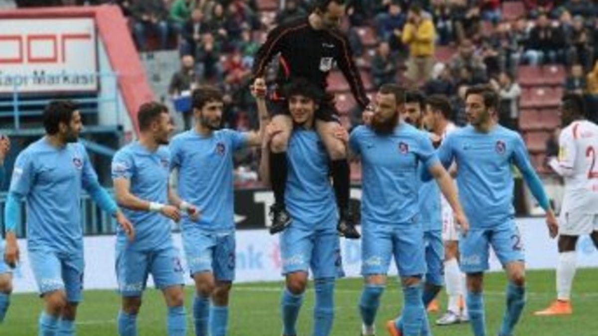 Hakem Deniz Ateş Bitnel’e kırmızı kart göstermesiyle uzun süre günden kalan Trabzonsporlu oyuncu Salih Dursun, bu kez jübilesini yapan Ali Şükrü Beldüz’ü omuzlarına alarak taşıdı.Trabzonsporlu oyuncu Salih Dursun, saha içerisinde yaptığı davranışla gündem olmaya devam ediyor. Süper Lig’de oynanan Galatasaray-Trabzonspor karşılaşmasında hakem Deniz Ateş Bitnel’e kırmızı kart göstererek protesto ederek Türkiye ve dünyanın gündemine oturan Salih Dursun bu kez jübilesini yapan 17 yıllık hakem Ali Şükrü Beldüz’ü omuzlarına aldı. Trabzonspor ile Samsunspor arasında oynanan hazırlık karşılaşmasında jübilesini yapan il hakemi Ali Şükrü Beldüz’ü omuzlarına alarak saha kenarına taşıyan Salih Dursun’un bu hareketi yine gündem oldu.