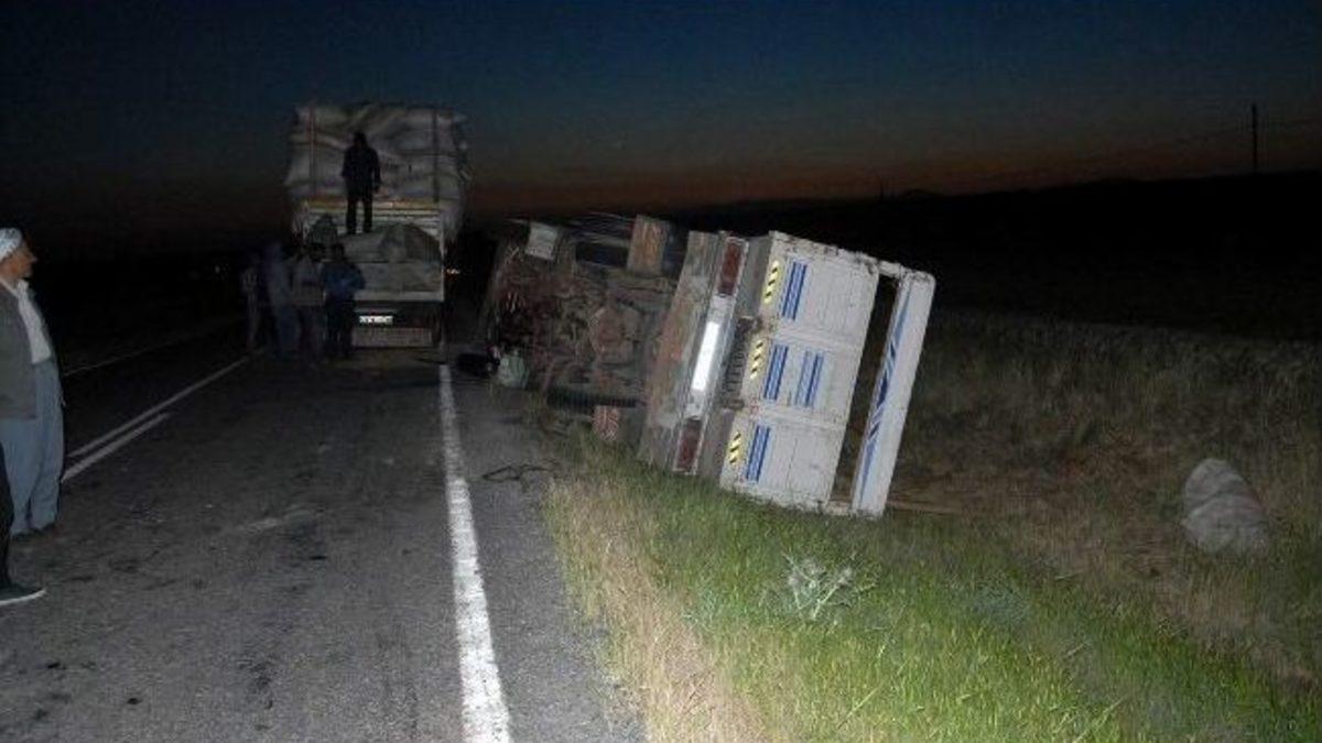 Şanlıurfa’nın Siverek ilçesinde saman yüklü kamyonetin devrilmesi sonucu 1 kişi yaralandı.Kaza, Siverek-eski Diyarbakır karayolunun 12. kilometresi Bakanak köyü mevkiinde meydana geldi. Edinilen bilgilere göre, Ahmet Al idaresindeki saman yüklü 63 N 0779 plakalı kamyonet, Bakanak köyü mevkiinde sürücünün dikkatsizliği sonucu devrildi. Kazada hafif yaralanan sürücü, özel bir araçla Siverek Devlet Hastanesi’ne kaldırıldı. Şarampole dökülen kamyonetteki istiflenmiş samanlar ise, kaza yerine gelen başka bir araca yüklendi. Olay yerine gelen jandarma ekipleri trafik akışını kontrollü olarak sağlarken, kamyonet çekici yardımı ile kaldırıldı.Jandarma, kazayla ilgili soruşturma başlattı.