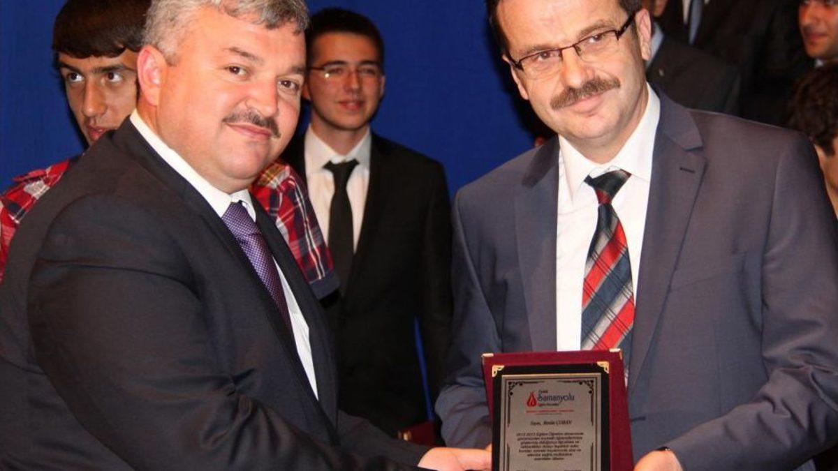 Konuşmalarından ardından Okul Genel Müdürü Mehmet Maya, öğrencilere ve öğretmenlere plaket verdi.