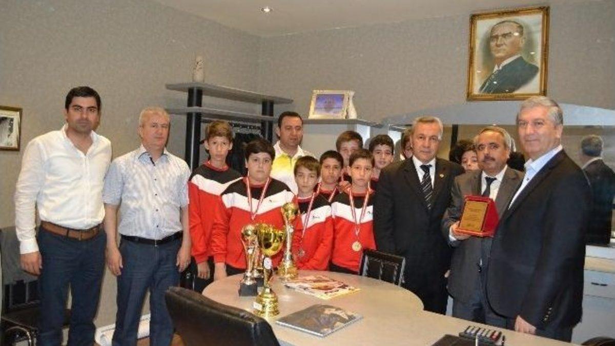 Küçük Erkekler Voleybol Türkiye finallerinde Turgutlu Samiye Nuri Sevil Orta okulu Türkiye 3'ncüsü olarak önemli bir başarıya imza attı. Türkiye 3'ncüsü olan oyuncular ve öğretmenler kendilerine destek olan Turgutlu Kaymakamı Nazmi Günlü'yü ziyaret ettiler ve verdiği desteklerden dolayı teşekkür ettiler. Kaymakam Günlü'yü ziyarette Turgutlu İlçe Milli Eğitim Müdürü Mehmet Ölmez, Samiye Nuri Sevil Orta okulu Müdürü Memduh Buran, beden eğitimi öğretmeni Yaşar Eser hazır bulundu.Manisa 1'ncisi olan takım daha sonra, Burdur'da grup 1'ncisi, Afyon'da yarı final grubunda da 1.olarak adını İskenderun'da oynanan Türkiye finallerine yazdırmıştı. Final grubunda oynadığı 5 maçın 2'ü kazanan okul takımı Turgutlu'ya kupayla dönmeyi başardı. Türkiye Şampiyonası dahil 17 maça çıkan takım sadece 2 kez mağlubiyet yaşadı. Kaymakam Günlü; " Oyuncularımızı ve eğitimcilerimizi tebrik ediyorum, çok önemli bir başarıya imza attılar. Bir ilçe takımının bu denli başarı yakalaması çok önemli, ben oyuncularımızın ilerleyen yıllarda bu başarıya tekrarlayacaklarına ve geliştireceklerine eminim" dedi.Türkiye Şampiyonasın gitmeden önce takıma sponsor olarak oyunculara spor ayakkabı desteği yağan Turgutlu'nun tanınmış firmalarından Sadıklar Tekstil'in sahibi Ali Başeskici'yi ziyaret eden yetkililer yaptıkları destekten dolayı çok teşekkür ettiler. Başeskici; "Okul sporlarına katkımız olduysa ne mutlu, Turgutlu'muzun adını Türkiye'ye duyurdukları için başta sporcularımız ve eğitimcilerimize teşekkür ederim" şeklinde konuştu.