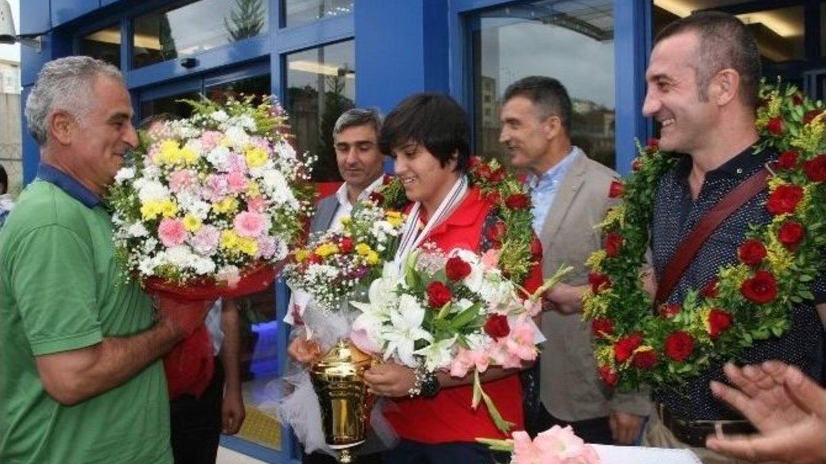 Şampiyon Boksör Busenaz Sürmeneli Çiçeklerle Karşılandı