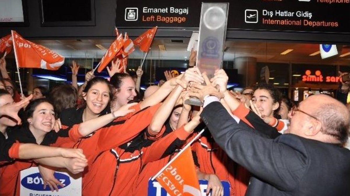 Voleybol DenizBank Kadınlar CEV Şampiyonlar Dörtlü Finali’nde şampiyon olan Eczacıbaşı VitrA, İstanbul’a döndü.Şampiyonlar Ligi’nde İtalyan takımı Unendo Yamamay’ı mağlup ederek Avrupa şampiyonu olan Eczacıbaşı, bu akşam saatlerinde Atatürk Havalimanı’na geldi. Şampiyon sultanları Eczacıbaşı Holding’in yönetim kurulu başkanı Bülent Eczacıbaşı olmak üzere şirket çalışanları, taraftar grubu tigers, altyapı ve spor okulu öğrencileri ve aileleri karşıladı.Hava alanında basın mensuplarına açıklamalarda bulunan Eczacıbaşı VitrA Kaptanı Esra Gümüş Kırıcı, hayallerini gerçekleştirdikleri için çok mutlu olduklarını belirterek, "Oraya giderken çok çalışmıştık ve bunun da karşılığını aldık. Final maçına gidip 3-0 almak kolay bir şey değil, bunu başardık. Takımımızın gücünü gösterdik. Sahaya bir yürek çıktık, sonuca da ulaştık. Vakıfbank ve Fenerbahçe’den sonra biz de şampiyonluğa ulaştık" dedi.Eczacıbaşı VitrA’nın tecrübeli oyuncularından Neslihan Demir de, ""Bir çoğumuzun kariyerinin en eksik parçasıydı. Bunu başardığımız için çok mutluyuz. İçimiz içimize sığmıyor. Daha iyilerini yaparız. Bundan sonra Türkiye kupasına hazırlanacağız" ifadelerini kullandı.Çok sayıda taraftarların tezahüratlarla karşıladığı şampiyonlara, Bülent Eczacıbaşı çiçek vererek tek tek kutladı. Takım toplu fotoğraf çekiminin ardından hava alanından ayrıldı.