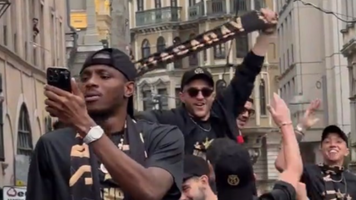 Sarı kırmızılılar, lise ziyaretinin ardından Sarayburnu'na geçmek için otobüse binerken, şampiyonluğun mimarlarından Victor Osimhen kişisel sosyal medya hesabından canlı yayın açtı.