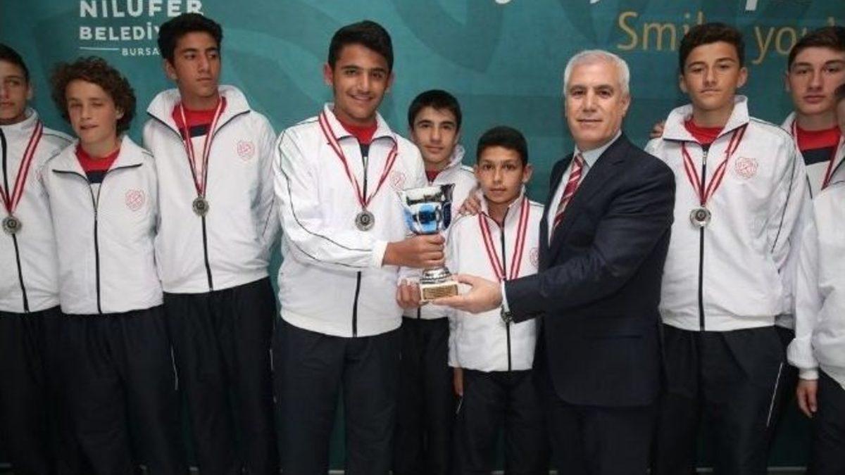 6. Uluslararası Manavgat Cup Futbol Turnuvası’nın U-14 kategorisinde şampiyon olan Fethiye İdmanyurdu sporcuları, kupa sevincini Nilüfer Belediye Başkanı Mustafa Bozbey ile paylaştı.Antalya’nın Manavgat ilçesinde düzenlenen 6. Uluslararası Manavgat Cup Futbol Turnuvası’nda Fethiye İdmanyurdu U-14 kategorisinde namağlup şampiyon oldu. 8 takımın yer aldığı U-14 kategorisinde mücadele eden Fethiye İdmanyurdu, 5 galibiyet 2 beraberlikle şampiyonluğu göğüsledi. Bursa ve Nilüfer’i en iyi şekilde temsil eden şampiyon takımın sporcuları kupayı kendilerine her zaman destek veren Nilüfer Belediye Başkanı Mustafa Bozbey’e getirdi. Başkanlık Makamı’nda gerçekleşen ziyarete Nilüfer Belediyesi Başkan Yardımcıları ve Meclis Üyeleri, Fethiye İdmanyurdu Başkanı Şenol Tosun, Takım Antrenörü Ceyhun Kurtlar ile Fethiye İdmanyurdu Yöneticileri katıldı. Takımın başarıları hakkında bilgi veren Kulüp Başkanı Şenol Tosun, “Birçok futbolcumuz Türkiye Süper Ligi takımlarının dikkatini çekti. Görüşmek ve oyuncularımız hakkında bilgiler almak istiyorlar. Desteklerinden dolayı Nilüfer Belediyesi’ne ve Başkanımız Mustafa Bozbey’e takımımız adına teşekkür ediyorum” ifadelerini kullandı.Takımın aldığı başarının sevindirici olduğunu söyleyen Başkan Bozbey de “Bu tür başarılar uluslararası alanda takımımızın ve Nilüfer’in isminin duyulması açısından çok önemli. Fethiye İdmanyurdu’nun hedefi her zaman şampiyonluk olmalı. Biz, Nilüfer Belediyesi olarak sporun ve sporcunun her zaman yanında olduk ve olmaya da devam edeceğiz” şeklinde konuştu.Başkan Bozbey, Manavgat’tan kupayla dönen futbolculara hediye verdi.