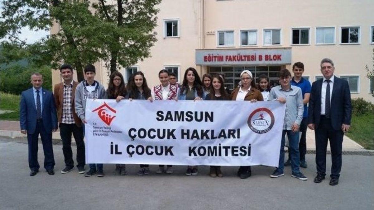 Samsun Aile ve Sosyal Politikalar il Müdürlüğü’ne bağlı Çocuk Hakları İl Çocuk Komitesi, farkındalık oluşturmak ve çocuklara sunulan hizmetleri yerinde görmek için Ondokuz Mayıs Üniversitesi Çocuk Üniversitesi’ni (OMÜÇEM) ziyaret etti.Çocuk Üniversitesi Müdürü Doç. Dr. İsmail Gelen ile görüşen Çocuk Hakları İl Çocuk Komitesi okul temsilcisi 15 çocuk, Çocuk Haklarına dair komite tarafından yapılan çalışmalar hakkında Gelen’e bilgi verdi ve Çocuk Üniversitesi’nin çalışmaları hakkında Gelen’den bilgi aldılar. Doç. Dr. İsmail Gelen, “Ülkemizde kurulu 13 çocuk üniversitesinden birisi olan OMÜÇEM’de üniversite ortamında gene üniversitemizin çok değerli öğretim üyeleri tarafından eğitimler verilmektedir. Aktif İngilizce kursu ile çocuklarımız çok kısa zamanda dil öğreniminde büyük mesafeler kat etmektedir. Diğer bir çalışmamızda Deneylerle Fen Okulu. Burada da gerçek yaşamla fen bilimini birleştiriyoruz. Çocuk Üniversitemizde 4 alanda faaliyetlerimizi gerçekleştiriyoruz. Bunlar; Beceri ve Sanat Programları, Bilim Modülleri, Geziler ve Yaz/Kış Okulları. Bunun yanında 11 adet proje/etkinliğimiz var. OMÜÇEM olarak gelen talepler doğrultusunda üniversitemizin tüm imkânları kullanılarak her türlü etkinliği yapabileceğimizi ifade etmek istiyorum. Tüm yaptığımız bu çalışmaların sonunda rektörlüğümüz tarafından çocuklarımıza “Katılım Belgesi” veriyoruz” diye konuştu.Samsun Çocuk Hakları İl Çocuk Komitesi üyeleri, OMÜ Çocuk Üniversitesinin; Birleşmiş Milletler Çocuk Haklarına Dair sözleşmenin 29. maddesinde “Eğitim, çocuğun kişiliğinin, becerilerinin, zihinsel ve fiziksel yeteneklerinin mümkün olduğunca geliştirilmesini hedefleyecektir. Eğitim, çocuğu özgür bir toplumda faal bir yetişkin yaşam için hazırlayacak; ana-babasına, kültürel kimliğine, kendi dili ve değerleriyle başkalarının kültürel kimliklerine ve değerlerine saygıyı geliştirecektir” ifadeleriyle amaçlanan eğitim ve gelişim hakkına çok önemli bir katkı sağlandığını ifade ettiler.Gerçekleştirilen ziyaretin devamında OMÜ Planetaryum’a geçen çocuklar uzay hakkında merak ettiği birçok soruya cevap bulmuş oldu. Ziyaret, Ondokuz Mayıs Üniversitesi Rektörlüğü tarafından komite üyesi çocuklara hediyeler takdim etmesiyle son buldu.