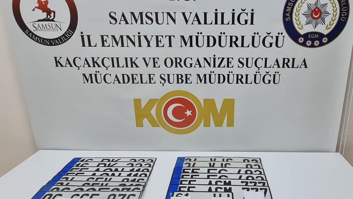 Samsun'da polis ekiplerince düzenlenen operasyonda 15 sahte araç plakası ele geçirildi, 2 şüpheli gözaltına alındı.