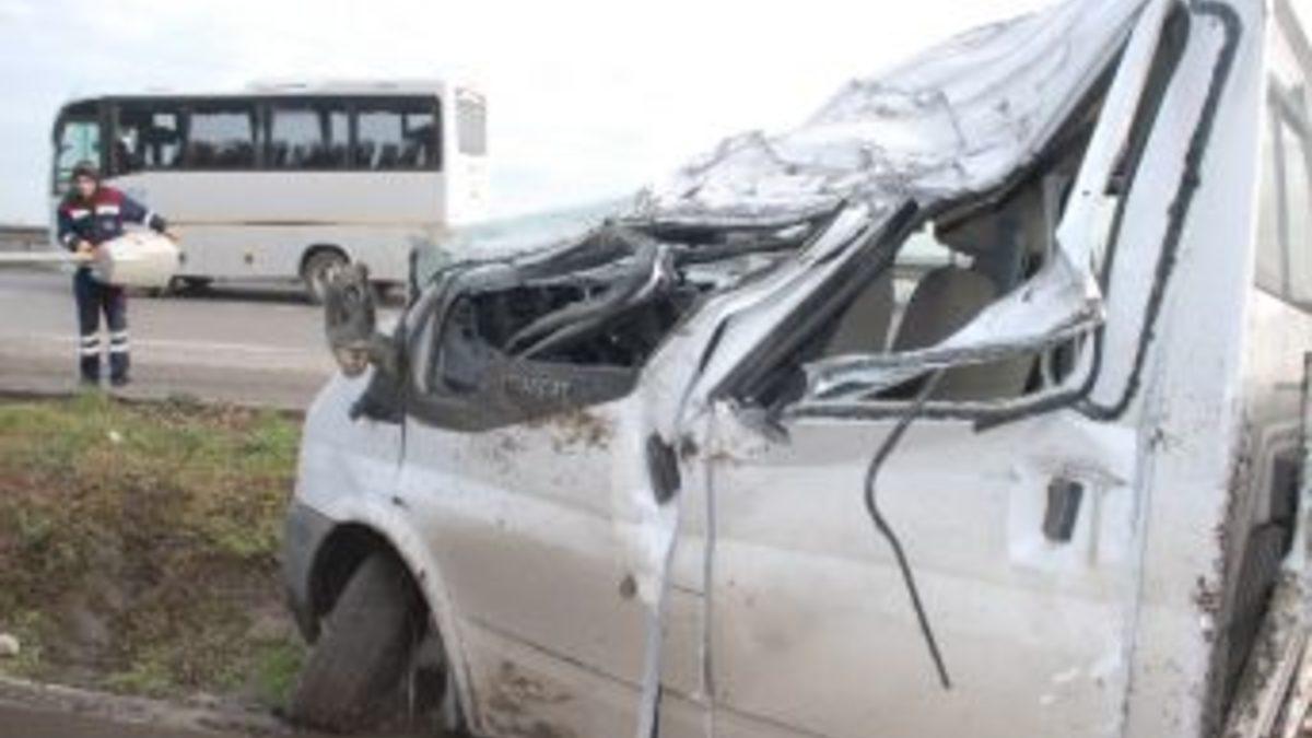 Kaza, Canik ilçesi Toptepe Mahallesi Atatürk Bulvarı'nda meydana geldi. Edinilen bilgiye göre, Ferhat A. (32) idaresindeki 55 BY 972 plakalı transit kamyonet, Tekkeköy istikametine seyir ederken direksiyon hakimiyetinin kaybedilmesi sonucu orta refüjdeki aydınlatma direğine çarpıp takla attı. Kazada araç sürücüsü Ferhat A. ile birlikte kamyonette bulunan Muhammet Çakır (35), Mustafa Boğa (38), Ferhat Yiğit (28), Mehmet Temiz (50), Recep Taştekin (47) ve Serkan Kara (31) yaralandı. Yaralılar, ambulansla hastaneye kaldırıldı. Yaralılardan Serkan Kara'nın sağlık durumunun ciddiyetini koruduğu öğrenildi. Polis kazayla ilgili soruşturma başlattı.