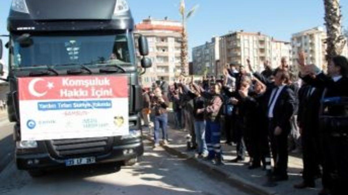 Canik Belediyesi ile İnsani Yardım Vakfı (İHH) ihtiyaç sahiplerine dağıtılmak üzere Suriye’ye 3 TIR dolusu un yolladı.Canik Belediyesi Adnan Menderes Demokrasi Meydanı’nda 75 ton un yüklü 3 TIR’ı Suriye’ye uğurlanması amacıyla tören düzenlendi. TIR’ların Suriye’ye gönderilmesinden önce konuşma yapan Canik Belediyesi Sosyologu ve Proje Koordinatörü Ali Kemal Tural Canik, “TIR’larımızda un var. TIR’larımız oradaki insanlarla kucaklaşmamıza, onlara buradaki insanların dualarını ulaştırması noktasında durak görevini görüyor. TIR’larımız bugün buradan yola çıktıktan sonra perşembe günü Suriye sınırını geçip İHH koordinatörlüğünde bu unları oradaki ihtiyaç sahiplerine ulaştıracağız” dedi.Suriyeli vatandaşlarının her şeye ihtiyacı olduğunu belirten Medical Park Hastanesi’nde görevli ve Suriye’deki iç savaştan Türkiye’ye sığınan Genel Cerrahi Uzmanı Prof. Dr. Mustafa Al Hamidi, “Suriye’deki durum uzun sürdüğü için her türlü şeye ihtiyacı var. Suriye’den komşu ülkelere 1.5 milyonun üzerinde insanımız gitti. Suriyeli vatandaşlarımızın çoğu da Türkiye’ye sığındı. Bizim ihtiyaçlarımız da Canik Belediyesi’nin gönderdiği 3 TIR bizi duygulandırdı. Müslüman ve kardeş ülke olduğumuz için bize herkes yardım ediyor. Türk halkına teşekkür ediyoruz” diye konuştu.Suriye’nin kan gölüne döndüğünü ifade eden Suriyeli öğrenciler, “Suriye’den Türkiye’ye okumak için geldik. Biz savaştan önce geldik. Suriye şu anda kan gölüne dönmüş olarak görüyoruz. Canik Belediyesi’nin böyle çalışması, Türk halkının bize kardeş duygusuyla yaklaştığını gösteriyor. Türk milletine teşekkür ediyoruz” şeklinde konuştular.Bu tür yardımların hem insani hem de İslami bir görev olduğunun altını çizen Canik Belediye Başkanı Osman Genç, “Katkı sağlayan bütün kuruluşlarımıza teşekkür ediyoruz. Bu coğrafya, bu havza yani Suriye’si Irak’ı, Lübnan’ı Mısır’ı bütün bu havzanın çocukları aynı medeniyetin çocuklarıyız. Türk milleti ile Filistinli, Suriyeli, Iraklı milletle hiçbir farkı yoktur. Değerlerimiz, inançlarımız aynıdır” ifadelerini kullandı.Konuşmaların ardından Adnan Menderes Demokrasi Meydanı’ndan 75 ton unun bulunduğu 3 TIR, dualar eşliğinde Suriye’ye gönderildi.