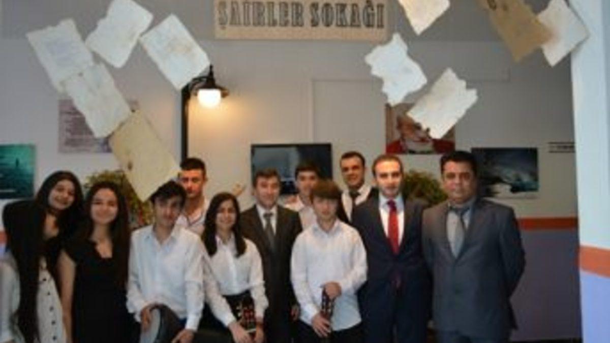 Şairler Sokağı girişinde davetlileri karşılayan öğrenciler kendi el yazıları ile hazırladıkları şiirleri davetlilere sundular.