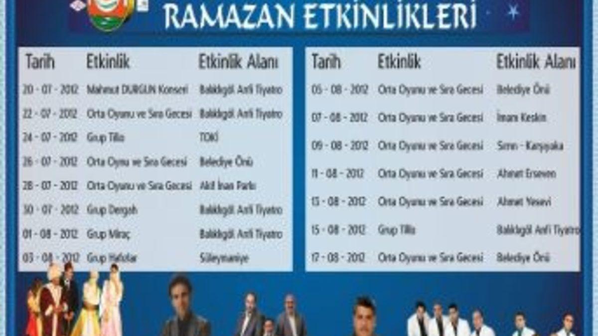 Şanlıurfa Belediyesi Kültür ve Sosyal İşler Müdürlüğü’nce organize edilen birbirinden güzel etkinliklerin Balıklıgöl Anfitiyatro’da ve Gezici Sanat TIR’ıyla birlikte kentin muhtelif semtlerinde düzenleneceği bildirildi. Etkinlik arasında eski ramazanların vazgeçilmezi olan Orta Oyunları, Karagöz Hacivat Gölge Oyunları, Sıra Gecesi, Dergâh Grubu, Grup Tillo, Grup Hafızlar, Grup Miraç ile tasavvuf müziği konserleri gerçekleştirilecek. Ramazan ayı ile ilgili çalışmaları tamamladıklarını belirten Belediye Başkanı Ahmet Eşref Fakıbaba, her yıl olduğu gibi bu yılda Şanlıurfalı hemşehrilerimize farklı bir ramazan yaşatmak amacında olduklarını ifade etti.