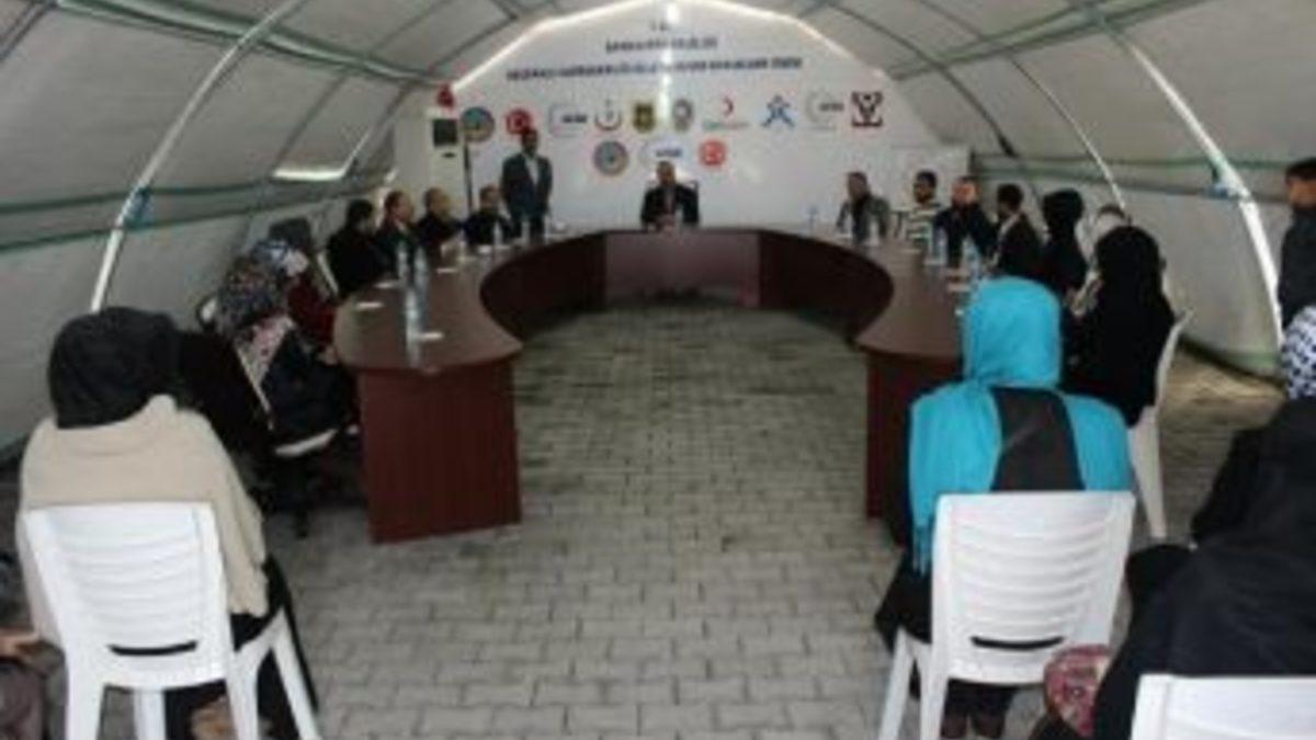 Şanlıurfa Gençlik Hizmetleri ve Spor İl Müdürlüğü’ne bağlı Bahçelievler Gençlik Merkezi gönüllüleri ile Harran Üniversitesi İlahiyat Fakültesi öğrencilerinden oluşan 50 kişilik grup, Suriyeli mültecilerin kaldığı Süleyman Şah Mülteci Kampı’nı ziyaret etti.Ziyaret sırasında gençlik merkezi görevlileri ve Harran Üniversitesi İlahiyat Fakültesi öğrencileri tarafından Suriyeli vatandaşlara kıyafet, oyuncak ve çeşitli hediyeler verildi.Gençlik Merkezi Müdürü İbrahim Halil Alp, İlahiyat Fakültesi Dekanı Prof. Dr. Abdurrahman Elmalı ve Yrd. Doç. Huzeyfe El Hatip kampta incelemelerde bulunarak, öğrencilerle birlikte ders işledi.Gezi sonrasında mülteci kampından bir çocuk, “Bizim hayatımız buradaki çadır kentten ibaret. Bizi düşünüp oyuncak getiren ve bizimle ilgilenen ağabey ve ablalarıma çok teşekkür ederim” dedi.Süleyman Şah Mülteci Kampı Müdürü ve Akçakale Müftüsü Hüseyin Ortaç, “Buradaki insanların ilgiye ihtiyacı gerçekten çok fazla. Buralara kadar gelip bu zor durumdaki insanların sıkıntılarını paylaşan Şanlıurfa Gençlik Merkezini ve gençleri ince düşüncelerinden dolayı tebrik ediyorum” diye konuştu.
