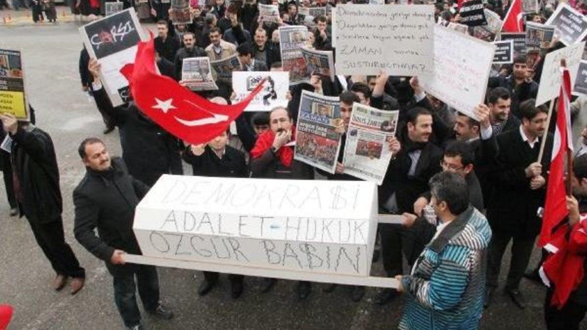 Ömer PINAR- Ömer ŞULUL/ŞANLIURFA, Adliye önünde öğle saatlerinde toplanan ve slogan atarak, 'Kendimi ihbar ediyorum, hizmet üyesiyim’ yazılı dövizler taşıyan grup, üzerinde ‘Hukuk, adalet, özgür basın' yazılı temsili tabutu omuzlarında taşıyarak alanda tur attı. Operasyona tepki gösteren sendika üyeleri, basın açıklaması yapıp, dua ettikten sonra adliye bahçesinden ayrıldı.