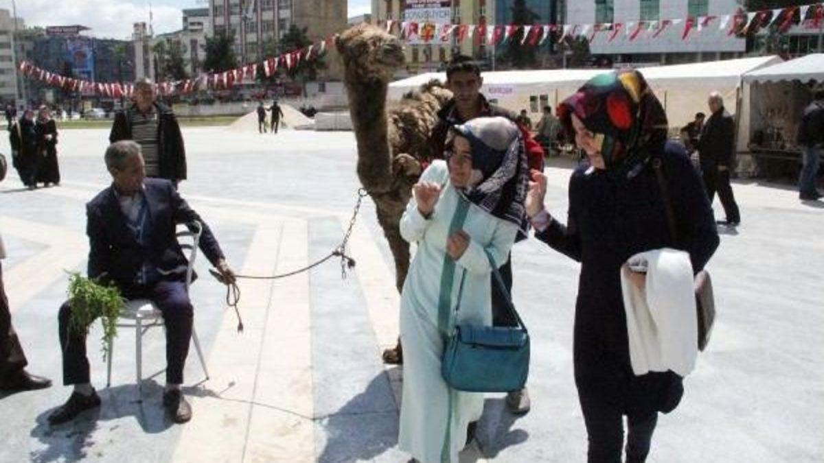 Ömer PINAR/ ŞANLIURFA, Şair Nabi Öğrenci Yurtlarında kalan öğrenciler yararına Topçu Meydanı'nda kermes düzenlendi. Yöresel yiyecek ve içeceklerin satışa sunulduğu kermese katılımcıların dikkatini çekmek için Akçakale'den kamyonete yüklenen bir deve getirildi. Deveyi görenler kermese akın ederken, çevredekiler cep telefonlarıyla fotoğraf çektirme yarışına girdi. 4 gün açık kalacak kermese ilgiyi artırmak için bu yönteme başvurulduğunu belirten deve sahibi Adem Müslümdağ, "Amacımız deve ile tanıtım yapıp öğrencilerimiz yararına açılan kermese dikkat çekmek. Uçak, tren ve arabalar çıktıktan sonra insanlarımız deveyi unutur oldu. İnsanların bu bölgede az sayıda bulunan deveyi görmesi ve kermese katkı sağlamak amacıyla bu yönteme başvurduk ve olumlu sonuç aldık" dedi.