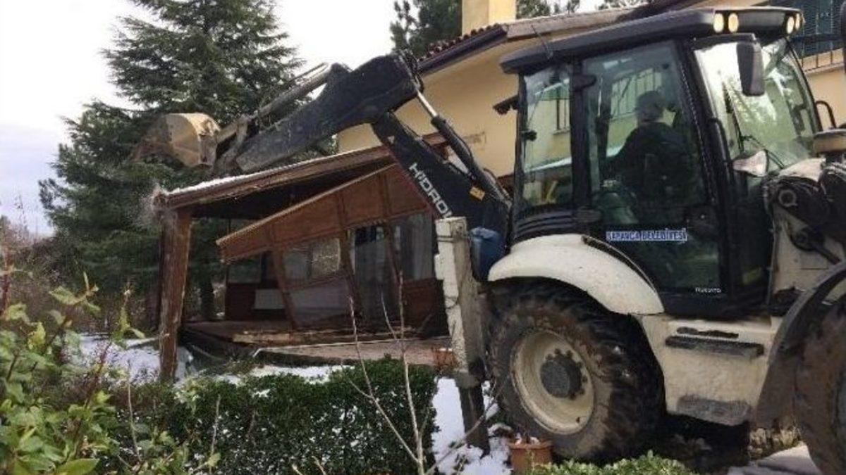Sapanca Belediyesi ekipleri tarafından ilçe genelinde yapılan kontrollerde kaçak olduğu tespit edilen yapıların yıkım işlemleri gerçekleştiriliyor.Sapanca Belediyesi İmar ve Şehircilik Müdürlüğü Yapı Kontrol Şefliği tarafından yapılan kontroller kapsamında son olarak, İlmiye mahallesinde bulunan bir meskene kaçak bölüm ilave edildiği tespit edildi. Söz konusu bölümler Fen İşleri Müdürlüğü ekipleri tarafından yıkıldı. İmar ve Şehircilik Müdürlüğü yetkilileri, ruhsatsız ve kaçak olarak inşa edilen bina, gecekondu ve inşaatlara karşı yasal tedbir ve uygulamaların tavizsiz bir şekilde uygulanacağını bildirerek vatandaşları uyardı. Sapanca genelinde kaçak yapılaşmaya kesinlikle izin verilmeyeceğini belirten yetkililer, yıkım ve cezai işlemlerin eksiksiz bir şekilde yerine getirileceğini vurgulayarak, vatandaşlardan, mağduriyet yaşamamaları için yasalara uygun davranmalarını istedi.