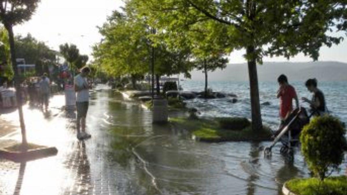 Sapanca Gölü'nde rüzgarın oluşturduğu dalgalar nedeniyle Sapanca sahilindeki yürüyüş alanının bir bölümü su altında kaldı.Gölde...