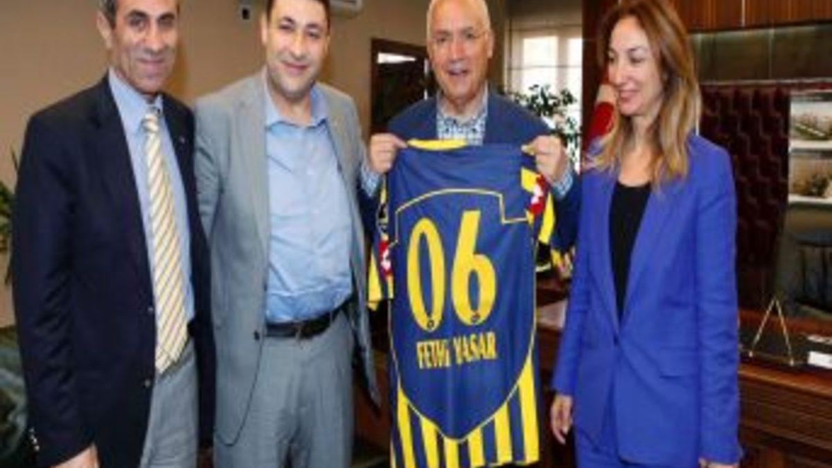 Kulüp Başkanı Ahlat, spor branşlarına ve sporculara verdiği önem, sağladığı imkan ve desteklerinden dolayı Yenimahalle Belediye Başkanı Fethi Yaşar’a teşekkür ederek Ankaragücü takım formasını Başkan Yaşar’a hediye etti.