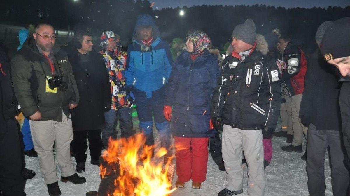 Kars’ın Sarıkamış İlçesi’nde bu yıl 4’ncü düzenlenen ‘Sarıkamış Kış Oyunları Festivali’ renkli görüntülere sahne oldu. Festivalin açılışında eksi 27 derece soğukta protokol üyeleri halay çekti.Cıbıltepe Kayak Merkezi’nde bu yıl 4’ncü düzenlenen ‘Sarıkamış Kış Oyunları Festivali!’nin açılışı yapıldı. Soğuk havada açılışı yapılan festivalde Kars Valisi Rahmi Doğan, Belediye Başkanı Murtaza Karaçanta, Sarıkamış Kaymakamı Yusuf izzet Karaman, Sarıkamış Belediye Başkanı Göksal Toksoy, AK Parti Milletvekili Selahattin Beyribey, AK Parti İl Başkanı Adem Çalkın, vatandaşlarla birlikte halay çekerek gönüllerince eğlendi.Kars Valisi Rahmi Doğan, “Sarıkamış Kar Oyunları Festivalimiz başladı. İlk günde festivale gösterilen ilgi bizleri oldukça memnun etti. İşte gördüğünü gibi herkes halay çekmiş oynuyor. Türkiye’ye buradan birlik beraberlik mesajları veriyor” dedi.Kamp ateşinin yakıldığı, havai fişek gösterisinin yapıldığı festivalde, folklor ekibinin gösterisinden zurnacının zurnası dondu. Adeta nefeslerin donduğu festival gecenin geç saatlerinde kadar devam etti. Müzik eşliğinde oynayan vatandaşla, soğuktan korunmak için yakılan kam ateşinde ısındı.