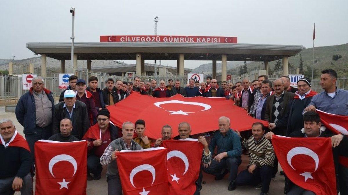 Manisa’nın Saruhanlı ilçesinde faaliyet gösteren esnaf, Zeytin Dalı Harekatına katılan Mehmetçik’e destek olmak amacıyla ellerinde Türk bayraklarıyla Hatay’ın Reyhanlı ilçesi Cilvegözü Sınır Kapısına gitti. İlk olarak Cilvegözü Sınır Kapısına giden esnaf, daha sonra sınır ilçeleri olan Kırıkhan ve Hassa’ya da ziyarette bulunarak, top sesleri altında Mehmetçik için dua etti.Saruhanlı Esnaf ve Sanatkarlar Odası, Türk Silahlı Kuvvetlerinin (TSK) hudut güvenliği ve bölgede istikrarı sağlamak, bölge halkını teröristlerin baskı ve zulmünden kurtarmak amacıyla Suriye’nin kuzeybatısındaki Afrin bölgesinde terör örgütleri PYD/PKK ve DEAŞ mensuplarına yönelik yürüttüğü ‘Zeytin Dalı Harekatı’na katılan askerlere destek olmak için Hatay’ın Reyhanlı ilçesi Cilvegözü Sınır Kapısına gitti. Saruhanlı’dan 2 otobüsle yaklaşık 80 esnaf, sınırın sıfır noktasında ellerinde Türk bayrakları ile askere desteğini yerinde gösterdi. Cilvegözü Sınır Kapısı önünde büyük bir Türk bayrağı açan Saruhanlı esnafına orada bulunan bölge halkı da katıldı. Sınır kapısı önünde basın açıklaması yapan Saruhanlı Esnaf ve Sanatkarlar Odası Başkanı Ahmet Emin Kenez, "Doğusuyla, batısıyla, kuzeyiyle ve güneyiyle bütün olarak ecdadımızın, atalarımızın, ulu önderimiz Mustafa Kemal Atatürk’ümüzün ve silah arkadaşlarının bizlere emaneti olan aziz vatanımızın şehzadeler şehri Manisa’nın Saruhanlı ilçesi esnafı olarak askerimize, polisimize, ordumuza destek olmak için buraya gelmiş bulunuyoruz. Allah tüm askerlerimizin, ordumuzun ve devletimizin yar ve yardımcısı olsun. Tüm şehitlerimize Allah’tan rahmet gazilerimize de acil şifalar diliyorum” dedi.Başkan Kenez’in açıklama yapmasının hemen ardından bölgede top atışlarının başlamasıyla Saruhanlı esnafı çatışmaların canlı şahidi haline geldi.Yapılan top atışlarının ardından Türkiye tarafında da toz bulutları oluşurken, Saruhanlı esnafı da tekbir getirerek, “Şehitler ölmez vatan bölünmez” sloganı attılar.Öte yandan, Cilvegözü Sınır Kapısında, Suriye’deki savaştan kaçarak hayatlarını kurtarmak için Türkiye’ye sığınmak isteyen yüzlerce Suriyelinin olduğu gözlendi.