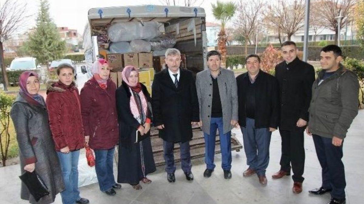 AK Parti Genel Merkez Kadın Kolları ve Türk Kızılay’ı tarafından başlatılan ‘Halep İçin Kardeşlik Zamanı’ isimli yardım kampanyası kapsamında AK Parti Saruhanlı Kadın Kolları tarafından toplanan 5 kamyon yardım malzemesi, Halep’e ulaştırılmak üzere AK Parti Manisa İl Başkanlığı’na gönderildi.İlçedeki uğurlama programına Saruhanlı Belediye Başkanı Dr. Hüseyin Yaralı, AK Parti İlçe Başkanı Ahmet Gökmen, AK Parti Saruhanlı Kadın Kolları Başkanı Medine Taştekin ve AK Parti Kadın Kolları üyeleri katıldı.Saruhanlı Belediyesi tarafından tahsis edilen alanda yaklaşık 10 gün boyunca toplanan ve maliyeti 40 bin lirayı bulan 50 çuval un, 500 litre zeytinyağı, kullanılmamış 150 adet battaniye ile 70 koli elbise, 45 koli gıda malzemesi ve 7 bin lira nakit para yardımı Halepli ihtiyaç sahiplerine ulaştırılmak üzere AK Parti Manisa İl Başkanlığı’na gönderildi.Başkan Yaralı, burada yaptığı açıklamada Suriye’de mazlumların yaşadığı drama, acı ve gözyaşına Türkiye hariç diğer ülkelerin seyirci kaldığını belirterek, "Bizler millet olarak mağdur ve mazlumlara sahip çıkmaya devam edeceğiz. Nerede bir ihtiyaç sahibi varsa onun yanında olacağız. Bu kapsamda ilçemizde adeta bir seferberlik yaşandı. Önemli ölçüde yardım toplandı. Yardımların toplanmasında emeği geçen Kadın Kolları Başkanımız Medine Taştekin ve yönetim kurulu üyeleri ile yardımda bulunan duyarlı vatandaşlarımıza teşekkür ederim." dedi.AK Parti İlçe Başkanı Gökmen ise, "Hemen yanı başımızda bizimle tarihi bağları olan kardeşlerimizin yaşadığı Halep’te de büyük bir insanlık dramı yaşanıyor. Halep halkı ölümle, sefaletle ve açlıkla iç içe getirilmiş durumda. Halepli kardeşlerimizin bize ihtiyacı var. Onları yalnız bırakmayacağız. Yardımların toplanmasında emeği geçenlerden Allah razı olsun" diye konuştu.AK Parti İlçe Kadın Kolları Başkanı Medine Taştekin de, Kadın kolları olarak karınca kararınca Halepli vatandaşlara yardımcı olmak istediklerini ifade ederek, "Suriyeli kardeşlerimizle ekmeğimizi paylaşıyoruz. Bugün itibariyle yardım kampanyamız sona erdi. Duyarlı ve hayırsever halkımızdan büyük destek gördük. Bizlerden desteğini esirgemeyen Belediye Başkanımız Dr. Hüseyin Yaralı, İlçe Başkanımız Ahmet Gökmen ve tüm duyarlı vatandaşlarımıza teşekkür ederiz" dedi.