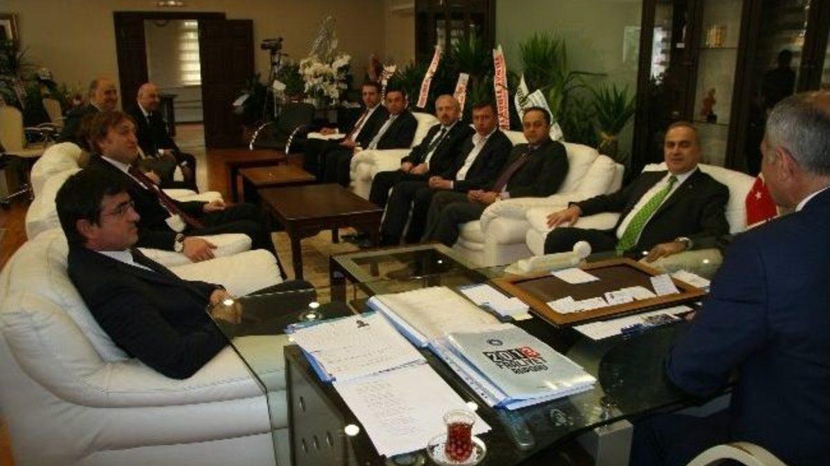 Sakarya Ticaret ve Sanayi Odası Başkanı Mahmut Kösemusul ve Yönetim Kurulu üyeleri Adapazarı Belediye Başkanı Süleyman Dişli’yi ziyaret ederek yeni döneminde başarı diledi.SATSO Başkanı Mahmut Kösemusul, AK Parti’nin Sakarya’da yaptığı 17-0’lık başarıyı kutlayarak , “Allah hayırlı dualar alacak hizmetler yapmayı nasip etsin. Yeni döneminizi tebrik ediyorum” dedi.Başkan Dişli, Adapazarı’nda ticaret yapanların büyük başarılara imza atmasının kendisini de gururlandırdığını ifade ederek, “ Bende sizi tebrik ediyorum. Yaptığı ihracatla şehir ekonomimize büyük katkı sağlayan iş dünyasına acaba bizde nasıl destek olabiliriz diye düşünüyoruz. Bu kadar başarı gösteren sivil toplum kuruluşlarına bizde her türlü kolaylığı sağlamaktan yana olduğumuzu ifade etmek isterim. Bu seçimlerde aldığımız sorumluluğumuz daha da arttı. Bu sorumluluğun bilinciyle çok daha güzel bir dönem geçirmeye hazırız” dedi.