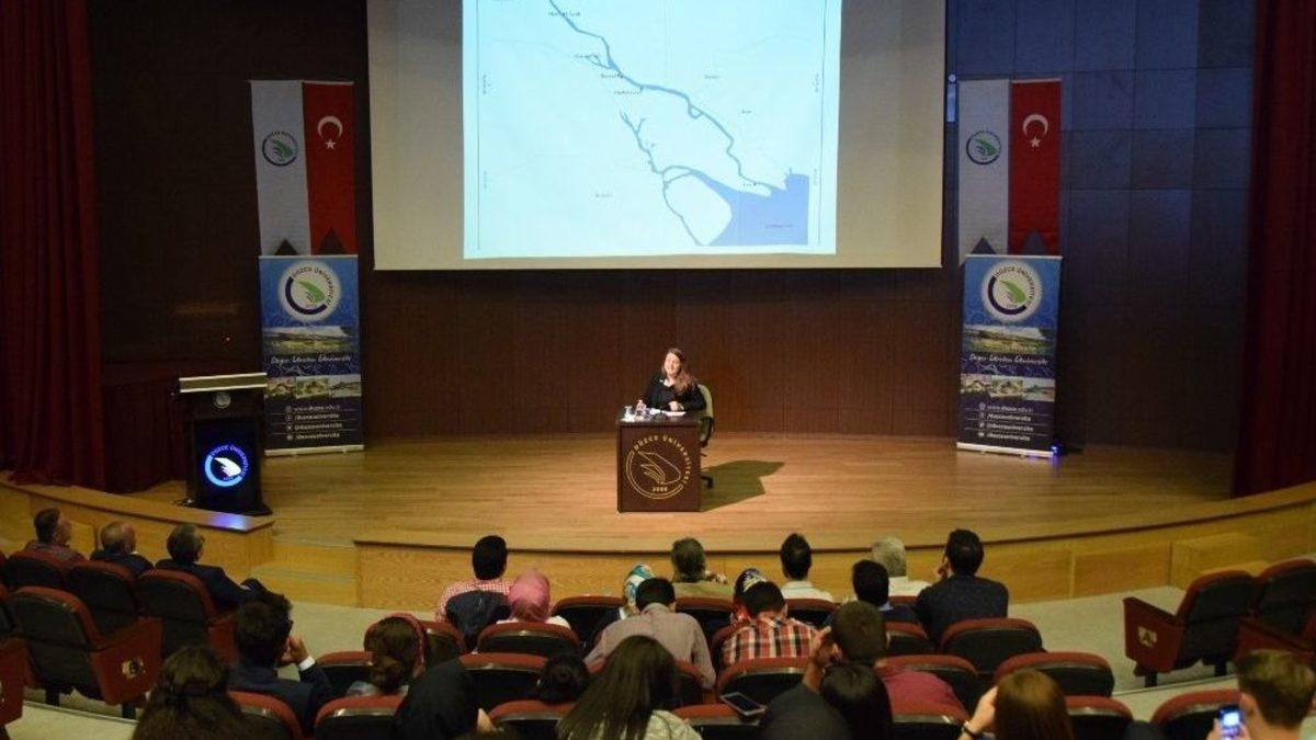 Düzce Üniversitesi Tarih Bölümü tarafından düzenlenen “İran-Irak savaşının tarihsel arka planı Şattülarap sorunu” başlıklı konferans gerçekleştirildi.Konferansta konuşmacı olarak katılan İstanbul Teknik Üniversitesi Fen Edebiyat Fakültesi İnsan ve Toplum Bilimleri Bölümü Öğretim Üyesi Doç.Dr. Burcu Kurt, Dicle ve Fırat nehirlerinin birleştiği bölgenin Şattülarap olarak adlandırıldığını ifade ederek bu bölgenin ticari, ekonomik ve stratejik olarak önemli bir noktada bulunduğunu söyledi. Basra Körfezi’ne kadar yapılan ulaşım ve taşımacılığın bölgenin önemini daha da artırdığına dikkat çeken davetli konuşmacı, İngiltere’nin çıkarttığı petrollerin ve Hindistan’dan elde ettiği değerli madenlerin sevkiyatını bu bölge üzerinden yaptığını sözlerine ekledi.1. Dünya Savaşı’ndan sonra İngiltere’nin yerini Amerika Birleşik Devletleri’ne bıraktığını belirten Doç. Dr. Burcu Kurt, sürekli çıkar çatışması yaşandığı için bölgede bir türlü istikrarın sağlanamadığını dile getirdi.Soru-cevap şeklinde devam eden program, Düzce Üniversitesi Fen Edebiyat Fakültesi Dekanı Prof. Dr. Metin Akkuş’un davetli konuşmacı Doç. Dr. Burcu Kurt’a teşekkür belgesini takdim etmesiyle sona erdi.Konferansa, Düzce Üniversitesi Fen Edebiyat Fakültesi Dekanı Prof. Dr. Metin Akkuş, Tarih Bölüm Başkanı Doç. Dr. Ali Ertuğrul, öğretim elemanları ve öğrenciler katıldı.