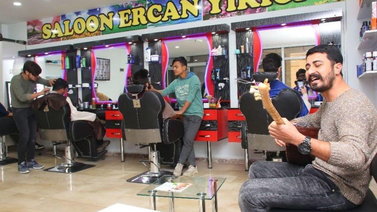 Adana’da 17 yıldır berberlik yapan Ercan Yıkıcı, saz çalıp şarkılar söyleyerek müşterilerine keyifli bir tıraş ve cilt bakımı hizmeti sunuyor.Henüz 12 yaşındayken çırak olarak berberlik mesleğine başlayan Ercan Yıkıcı (29), 7 yıl önce tanıştığı müzik deneyimini mesleğiyle birleştirdi. Yüreğir ilçesindeki Sepici Mahallesi’nde berber salonu işleten ve beraberindeki 3 çalışanına ustalık yapan Yıkıcı’nın salonundaki makas seslerini saz ve şarkı nağmeleri bastırıyor.Müşterilerinin tıraş sırasında müzik dinletisine ilk başta alışamadığını ancak ilgi görmesi nedeniyle daha sonra devam ettiğini belirten Ercan Yıkıcı, "Sadece saz dinleyip tıraş olmak için uzaklardan gelen müşterilerim var. Müzikle ilgili ileride daha iyi işler yapma planım var. Yıllar önce bir arkadaşım bana sazı sevdirmişti, şarkı söylemeyi sevdirmişti. Müziğin ne kadar keyifli olduğunu öğrenmiştim. Müşterilerimi ekstra mutlu etmek için bu yola başvurdum" diye konuştu.Sazın yanı sıra flüt ve gitar da çaldığını aktaran Yıkıcı, öğle saatlerinde salonundaki tüm koltukların dolduğunu söyledi. Müşterilerinden istek parçalar da aldığını anlatan Yıkıcı, "Eşleriyle gelenler de oluyor. Üniversiteden hocalarımız da geliyor. Kimseyi kırmıyoruz. Boş olduğumuz zamanlarda sazı elimize alıp maske yapıyoruz, tıraş ediyoruz, mini bir konser vererek onlara güzel anlar yaşatıyoruz" ifadelerini kullandı."Türküler sayesinde sıkılmıyorum"Yıkıcı’nın müşterilerinden Enes Özerli ise tıraş olurken türkü dinlediği için sıkılmadığını ve zamanın nasıl geçtiğini anlamadığını ifade ederek, "Bir yandan da eğlence katıyor. Uygulama çok güzel. İnsan dinlerken huzura varıyor, içi ferahlıyor, motive oluyor" şeklinde konuştu.