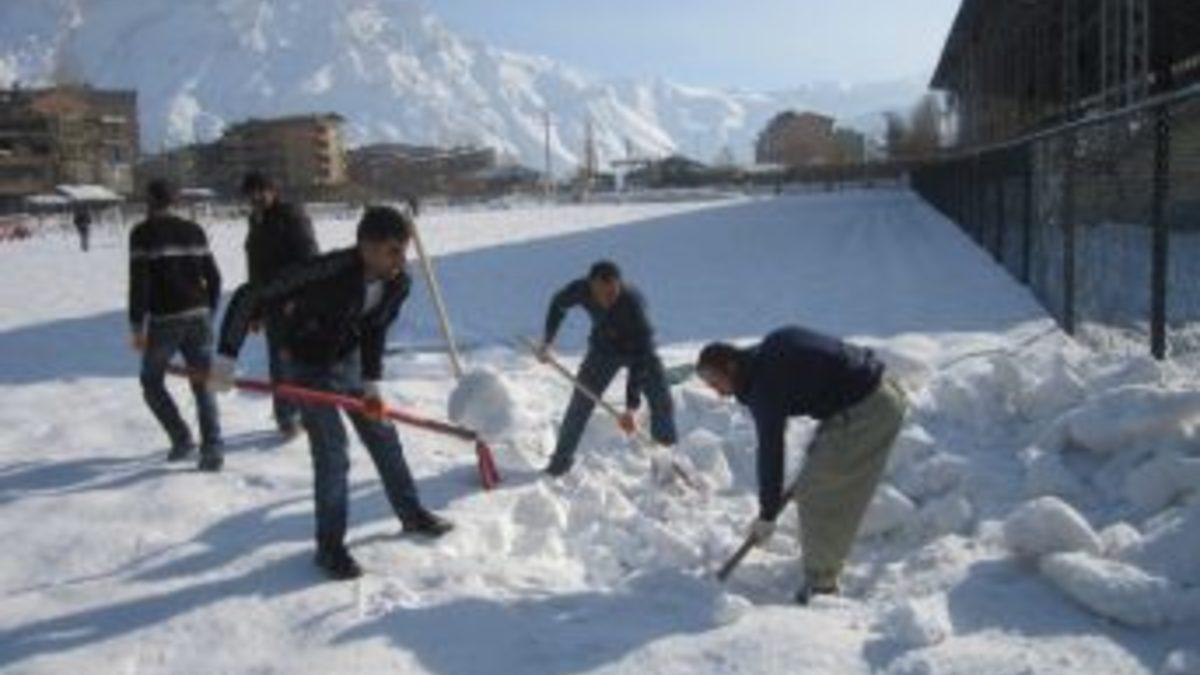 Yoğun yağış nedeniyle yaklaşık yarım metreyi bulan stattaki kar, İl Özel İdaresi ve Hakkari İl Gıda Tarım ve Hayvancılık Müdürlüğü’nde geçici olarak görevlendirilen İş-Kur Müdürlüğüne bağlı işçiler ile Zapspor Kulübü tarafından ücretli olarak görevlendirilen işçiler tarafından küreklerle temizlemeye başlandı. Dondurucu havaya rağmen işçiler bazen kürekle bazen de kar yığınlarını kucaklarına alarak saha dışına çıkarttılar. Sahada yürütülen karla mücadele çalışmalarını yerinde takip eden Hakkari Zapspor Teknik Direktörü Mecit Tekin, valiliğin talimatları doğrultusunda gelen işçilerin yaklaşık 3 gündür küreklerle sahayı temizlemesine rağmen halen bitirilemediğini belirtti. Tekin, “Sahada yaklaşık 45 santimetre kar bulunuyor. İşçiler 3 gündür çalışmasına rağmen sahayı pazar gününe yetiştirmeleri mümkün değildir. İnsan gücüyle sahadaki kar yığınlarını temizlemek gerçekten çok zor. Geçen yıl 40 bin TL harcanarak saha temizlenmişti. Eski Valimiz Muammer Türker bu konuda bize çok yardımcı olmuştu. Fakat şu an görevde bulunan valimiz bu konuda parasal anlamda bize destek sağlamıyor. Biz futbol federasyonuna bağlı bir kulüp isek, bu şehir Türkiye’nin bir şehri ise artık bu şehre valinin ve devletin sahip çıkması gerekiyor” dedi.