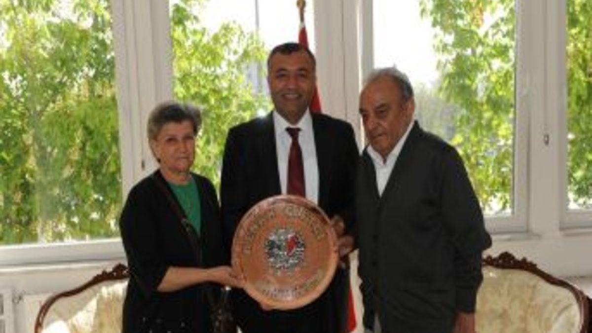 Kütahya Valisi Kenan Çiftçi'ye baba Mehmet Ali Gökcan ve anne Nebahat Gökcan desteklerden dolayı teşekkür ederek hediye takdim ettiler.