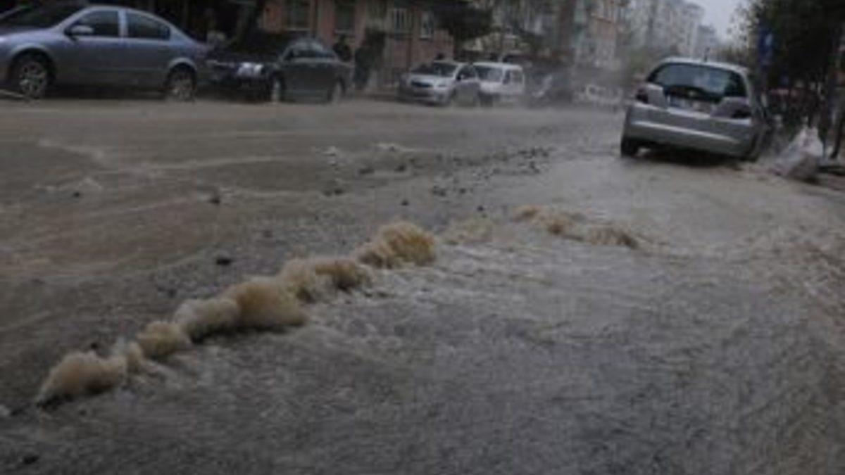 Şehit İlhanlar Caddesinde patlayan içme suyu şebeke borusunda fışkıran sular kaldırımları sökerek bir çok dükkanın su dolmasına sebep oldu.