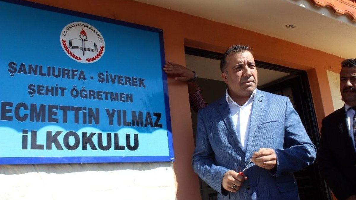Tunceli Pülümür karayolunda PKK’lı teröristlerce şehit edilen öğretmenin ismi, görev yaptığı Şanlıurfa’nın Siverek ilçesindeki okula verildi.Siverek ilçesine bağlı Çiftçibaşı Mahallesi’nde görev yapan Necmettin Yılmaz, 16 Haziran’da memleketi Gümüşhane’ye giderken Tunceli-Pülümür karayolunda PKKlı teröristlerce yolu kesilip aracı yakıldıktan sonra kaçırılarak şehit edilmişti. Siverek Kaymakamlığınca Çiftçibaşı Mahallesi’ndeki okulda yapılan tadilatın ardından TÜBİTAK tarafından Necmettin Yılmaz hatırasına kütüphane kurulmuştu. Şehit öğretmenin unutulmadığı Şanlıurfa’da Valilik tarafından alınan kararla şehit öğretmenin görev yaptığı okulun adı Şehit Öğretmen Necmettin Yılmaz olarak değiştirildi. Okulun bahçesinde düzenlenen törenle Siverek Kaymakamı Metin Demirel, Şanlıurfa İl Milli Eğitim Müdürü Şerafettin Turan ve İlçe Milli Eğitim Müdürü Nuri Kapanoğlu tarafından şehit öğretmenin isminin yazılı olduğu yeni tabela okula asıldı.Şehit öğretmenin öğrencilerinden Hasan Çaçan, Necmettin Yılmaz’ı çok sevdiğini söyleyerek, "Öğretmenimizi şehit edenlerin Allah belasını versin. Biz onu çok seviyorduk, bizim eve gelirdi, beraber yemek yerdik" diye konuştu. Necmettin öğretmenini çok özlediğini kaydeden 3. sınıf öğrencisi Mircan Çaçan ise isminin okula verilmesine çok sevindiklerini ifade etti.Şanlıurfa Milli Eğitim Müdürü Şerafettin Turan, Necmettin Yılmaz’ın teröristler tarafından hunharca şehit edildiğini belirterek, "Olayın ardından Bakanımızın talimatıyla kendi görev yaptığı okula Necmettin öğretmenimizin ismi verildi. Hepimize hayırlı olsun. Hecmettin öğretmenizi, hem eğitim camiası hem de bölge insanı unutmadı" dedi.Siverek Kaymakamı Metin Demirel ise "Şanlıurfa Valiliği ve Milli Eğitim Müdürlüğü tarafından alınan karar doğrultusunda, şehit öğretmenimiz Necmettin Yılmaz’ın ismini ölümsüzleştiriyoruz. İnşallah Türkiye Cumhuriyeti devleti baki kaldıkça öğretmenimizin adı da burada yaşayacaktır. Allah’tan öncelikle Necmettin Yılmaz kardeşimize, bu vesileyle tüm şehitlerimize rahmet diliyorum, minnetlerimi ifade ediyorum" dedi.Törenin ardından Kaymakam Demirel ve beraberindekiler, muhtar ile mahalle sakinlerini ziyaret etti.