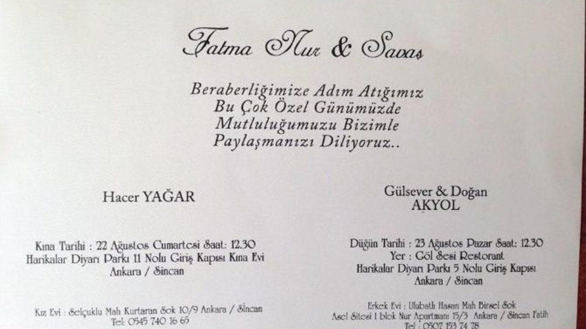 Şırnak’ın Silopi ilçesinde teröristlerce yola döşenen mayının patlatılması sonrasında 3 arkadaşı ile birlikte şehit olan polis memuru Savaş Akyol’un 23 Ağustos tarihinde dünya evine gireceği ve davetiyeleri bile bastırdığı ortaya çıktı.Şırnak’ın Silopi ilçesinde uzaktan kumandalı mayının patlaması neticesinde özel harekat polisi olan Resul Kayaoğlu, Şahin Polat Aydın, Savaş Akyol ve Mustafa Yahya Mertcan şehit olmuştu. Şehit polislerden Yozgat nüfusuna kayıtlı olan Savaş Akyol’un 23 Ağustos tarihinde dünyaevine girmeye hazırlandığı ortaya çıktı.Şehit polis memuru Savaş Akyol’un 23 Ağustos tarihindeki düğünde Hacer Yağar ile hayatını birleştireceği ve düğün için davetiyelerin bastırılarak dağıtımının yapıldığı öğrenildi.