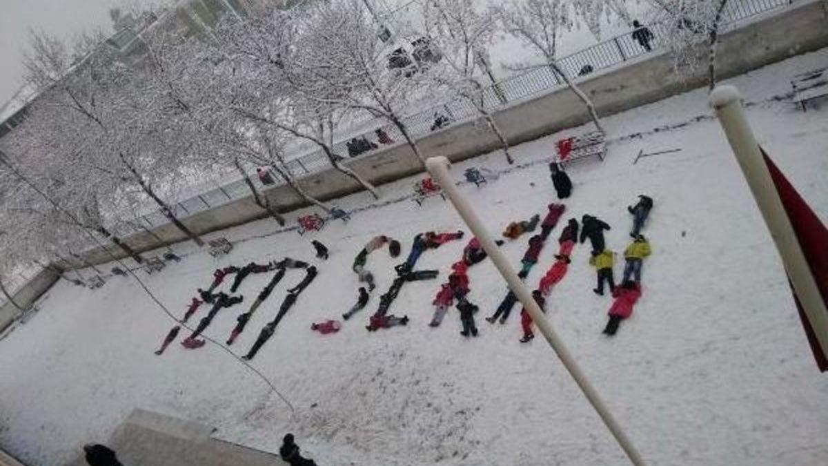 Ersan ERDOĞAN/MANİSA, Manisa'nın Yunusemre İlçesi Mareşal Fevzi Çakmak Mahallesi'ndeki 1160 öğrencisi bulunan Taytanlı İlhan İlköğretim Okulu öğrencileri, yağan kar nedeniyle büyük sevinç yaşadı. Okul bahçesinde kar topu oynayıp, eğlenen dördücü sınıf öğrencileri, İzmir Adliyesi'nde gerçekleşen terör saldırısında şehit düşen kahraman polis memuru Fethi Sekin'i de andı. Öğrenciler, okul bahçesindeki karların üzerine uzanarak, bedenleriyle 'Feti Sekin' yazdı. Öğrenciler tarafından bir anda karar verilip uygulamaya geçilen o anlar, öğretmenleri tarafından cep telefonuyla görüntülendi. Sosyal medyada paylaşılan o görüntü çok sayıda kişi tarafından beğenildi.