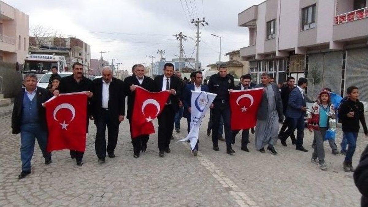 Şanlıurfa’nın Ceylanpınar Akil Gençler Platformu tarafından şehit olan polisler için mevlit-i şerif okundu.Ceylanpınar Akil Gençler Platformu tarafından ilçenin Bahçelievler mahallesinde bulunan kültür ve taziye evinde İstanbul’daki patlamada şehit olan polis memurları ve vatandaşlar için mevlit-i şerif okundu. Mevlide mülki amir, ilçe belediye başkan yardımcısı, belediye encümenleri ve vatandaşlar katıldı. Okunan mevlit-i şerifin ardından kültür evinden Akil Gençler Platformu bulunduğu binaya kadar terörü lanetleyen kısa bir yürüyüş gerçekleştirildi. Türk bayraklarının açıldığı yürüyüşte İlçe Belediye Başkan Yardımcısı Adnan Daşkıran ve Emniyet Müdürü Mehmet Erol Duyar terörü lanetleyen birer konuşma gerçekleştirdi. Konuşmada şehit olan polis memurlarına Allah’tan rahmet kederli ailelerine başsağlığı dileklerinde bulunuldu.