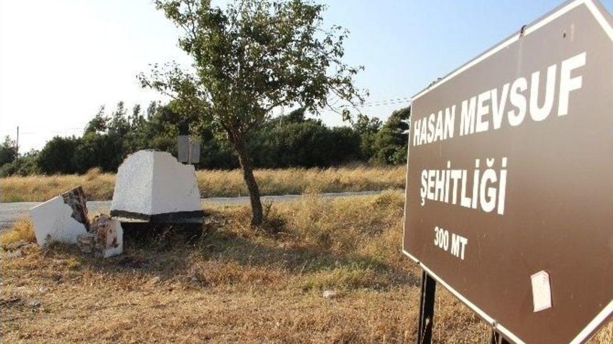 Çanakkale’de, Dardanos mevkiinde bulunan Hasan Mevsuf Şehitliğinin girişinde bulunan kaide, bir otomobilin çarpması sonucu yıkıldı....
