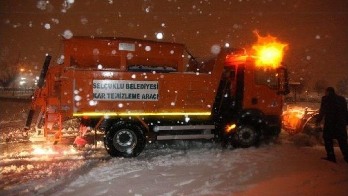Konya’nın merkez Selçuklu İlçe Belediyesi, kar yağışının başlamasıyla birlikte çalışmalarına başladı. İlçe merkezi ile yeni bağlanan köy ve beldelerde yol açma çalışmalarını aralıksız sürdüren ekipler kar yağışının olumsuz etkilerini en aza indirmek için çalışıyor.Selçuklu Belediye Başkanı Uğur İbrahim Altay, ilçe genelinde yürütülen yol açma çalışmalarını yerinde inceledi. Selçuklu’ da karla mücadeleye gece gündüz demeden devam ettiklerini belirten Başkan Altay ,”İlimiz yoğun bir kar yağışının etkisinde. Ekiplerimiz gün boyu çalışmaya devam ettiler. Akşam vardiyasında da yoğun bir şekilde çalışıyoruz. Amacımız halkımızın herhangi bir kazaya uğramadan ulaşımını sağlayabilmek. Selçuklu Belediyesi olarak 52 araç ve 400’ e yakın personelle gece gündüz demeden Selçuklu’da karla mücadeleye devam ediyoruz” dedi.Selçuklu Belediyesince yapılan açıklamada, yolların buzlanmasına karşı tuzlama çalışmasının yanı sıra solüsyon kullanıldığı da belirtilerek, “Solüsyon -30 derecede buzlanmayı önlerken, 5-6 gün boyunca etkisini gösteriyor. Kar yağışı ve buzlanmalar için 50 ton solüsyon ve 700 ton tuz alarak kötü hava koşullarına karşı tedbir alınmıştır” denildi.Selçuklu Belediyesi’ne ait iş makineleri, solüsyon ve tuzlama araçları 24 saat boyunca yolları trafiğe açık tutmak için çalışıyor. İlçe merkezi ile yeni bağlanan köy ve beldelerde yol açma çalışmalarını aralıksız sürerken, Selçuklu Belediyesi’ne bağlı ekipler İstanbul Yolu’nu trafiğe açabilmek için çalışan Karayolları Genel Müdürlüğü ve Büyükşehir Belediyesi ekiplerine takviye destekte bulunuyor.