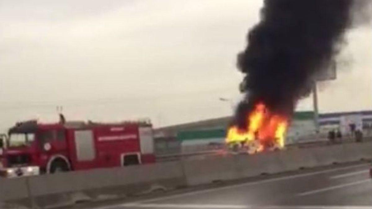 Kocaeli’nin Gebze ilçesinde D-100 üzerinde seyir halindeyken motor kısmından dumanlar çıkan servis minibüsü, yolcuların inmesi sonrasında alev alev yandı.Edinilen bilgiye göre, Gebze Muallimköy mevkii D-100 üzerinde meydana gelen olayda bir servis minibüsü alev alev yandı. Seyir halindeyken aracının motor kısmından dumanlar yükseldiğini gören sürücü, minibüsü yol kenarına çekerek yolcuları indirdi. Yolcuların inmesinden kısa bir süre sonra ise aracı saran dumanlar aleve dönüştü. Kısa sürede alev topuna dönen minibüs, olay yerine gelen itfaiye ekiplerinin müdahalesi sonrası söndürüldü.Aracın yanma anı ise yoldan geçen sürücüler tarafından cep telefonuyla çekildi. Görüntülerde servis minibüsünün alev alev yanma anı görülüyor. Görüntülerin devamında ise olay yerine gelen itfaiye ekipleri aracı söndürüyor.