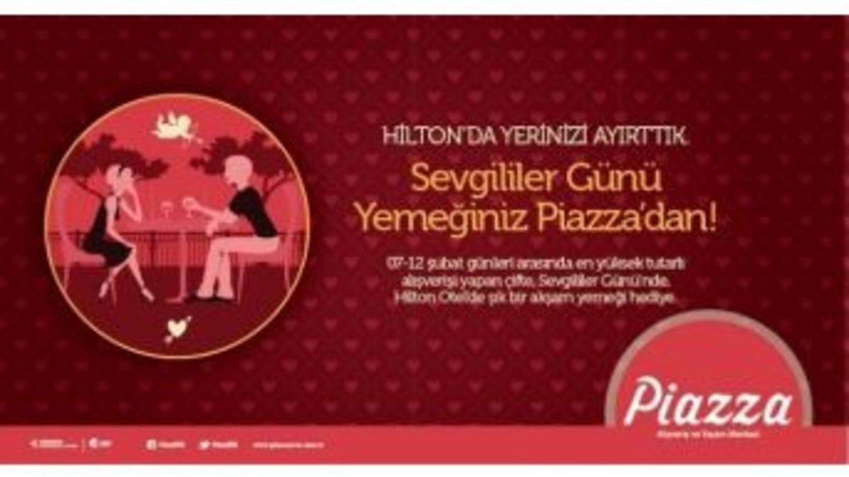 Ziyaretçilerine alışverişten daha fazlasını sunan Şanlıurfa Piazza Alışveriş ve Yaşam Merkezi, her özel günde olduğu gibi Sevgililer Günü'nde de özel bir kampanya düzenledi. Piazza; 5 şanslı ziyaretçisini 14 Şubat Sevgililer Günü’nde Hilton'da akşam yemeğinde ağırlayacak.'Hilton'da Yerinizi Ayırttık' sloganıyla yola çıkarak çiftlere 14 Şubat Sevgililer Günü’ne özel akşam yemeği programını düzenleyen Piazza'nın kampanyasından 12 Şubat 2014'e kadar en yüksek tutarda alışverişi yapan çiftler faydalanabilecek. Bu tarihe kadar yaptıkları alışverişlerini belgeleyen fiş ya da faturaları danışma birimine ibraz edecek olan ziyaretçiler, Sevgililer Günü'nde akşam yemeğinde ağırlanma şansını bulabilecek.Piazza’ya gelen çiftler, hem Sevgililer Günü için aradıkları en özel hediyeleri bol alternatiflerle ve uygun fiyatlara bulabiliyor hem de 14 Şubat’ta unutulmaz bir akşam yemeği kazanma fırsatını yakalıyor olacak.