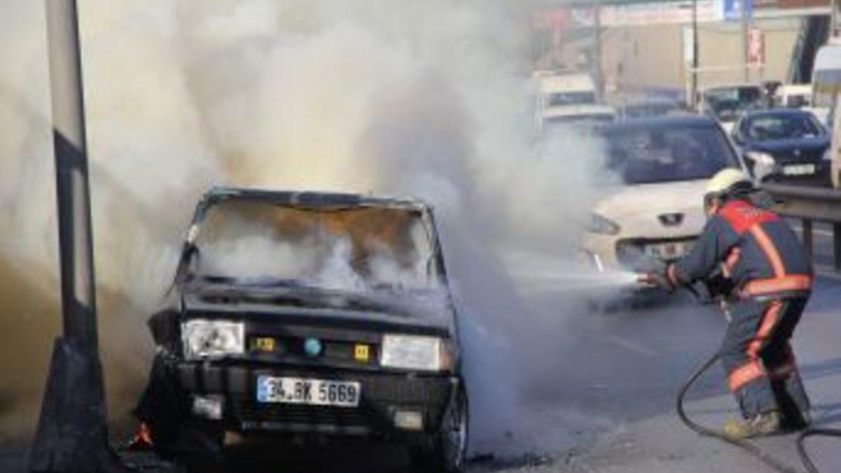 İstanbul'da D-100 kara yolunda seyir halindeki bir otomobil aniden alev aldı. Tamamen yanan otomobil kullanılamaz hale gelirken, araçta bulunan 2 kişi son anda kurtuldu.