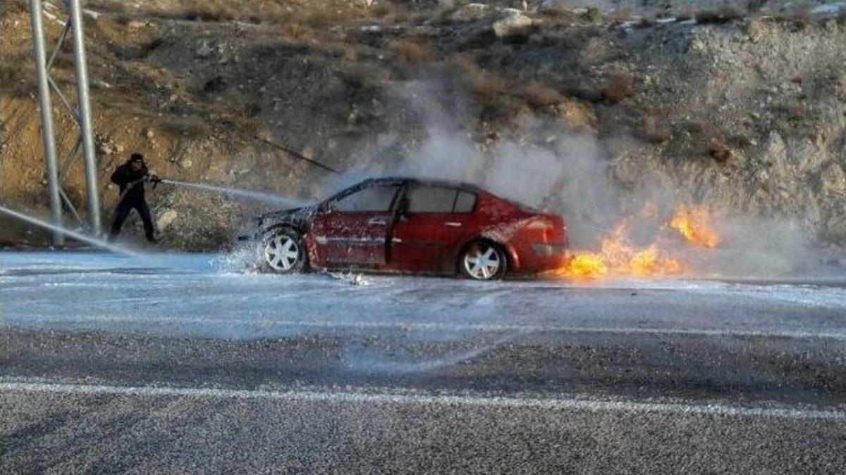 Sivas’ın Gürün ilçesinde seyir halinde olan ve içinde 3 kişinin bulunduğu otomobil yanarak kullanılamaz hale geldi.Edinilen bilgiye göre olay, saat 07.30 sıralarında Gürün Bölge Trafik İstasyon Amirliği önünde meydana geldi. Bolu’ya yakınlarının cenazesini katılmak için yola çıkan Yaşar Çakır yönetimindeki 33 BZH 46 plakalı otomobil seyir halindeyken biranda alev aldı. Sürücü Çakır ile birlikte otomobilde bulunan Songül Çakır ve İnan Aktaş yanan otomobilden son anda kendilerini dışarı attı. Otomobilde bulunan alev topuna dönen araca müdahale edemeyince Gürün Belediyesi itfaiye ekiplerinden yardım istedi. Bu sırada aracın Gürün Bölge Trafik İstasyon Amirliği’ne yakın olmasından dolayı da polis ekipleri olası bir terör saldırısı şüphesine karşılık güvenlik önlemli aldı. Olay yerine gelen itfaiye ekipleri yaklaşık 1 saat süren çalışmanın ardından yangını söndürdü. Otomobil kullanılamaz hale geldi. Sürücü Çakır’ın yanan otomobilinin görüntüsünü cep telefonu ile kaydetmesi dikkat çekti.
